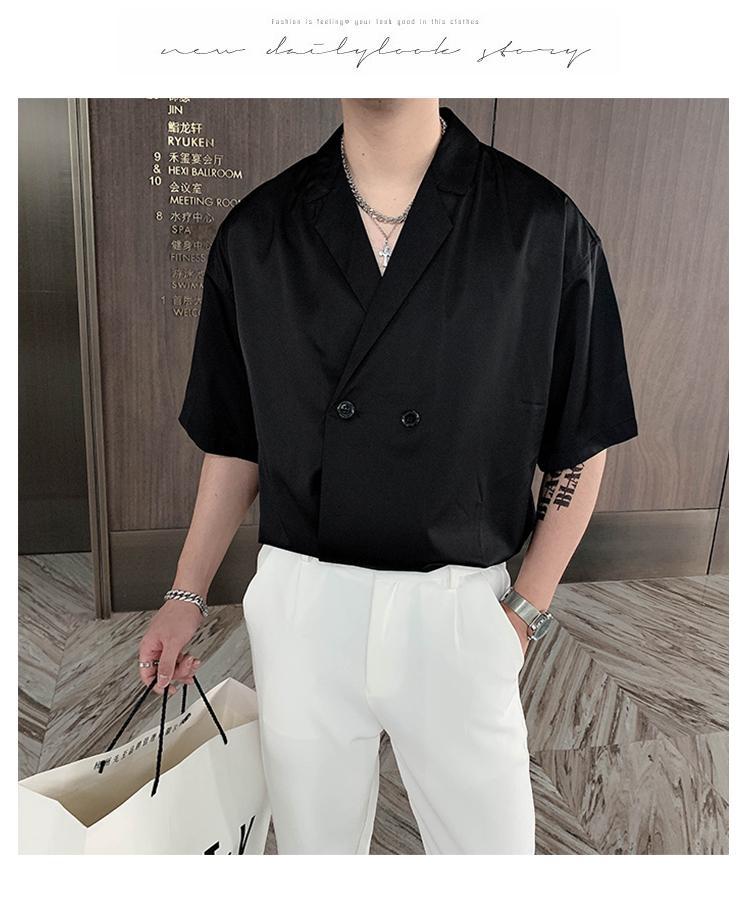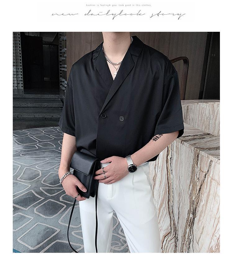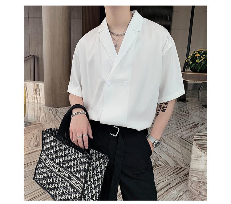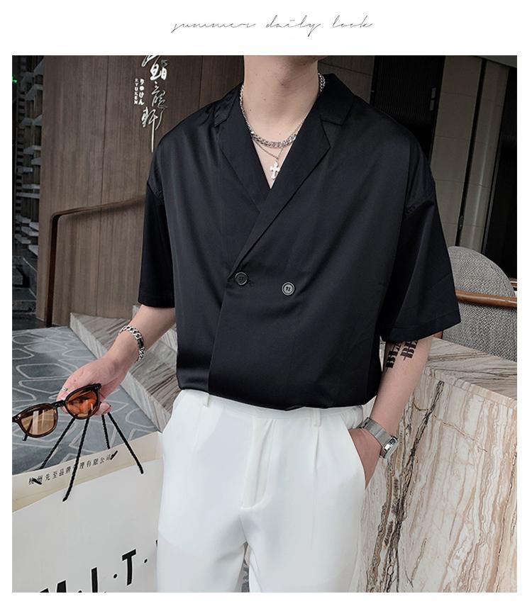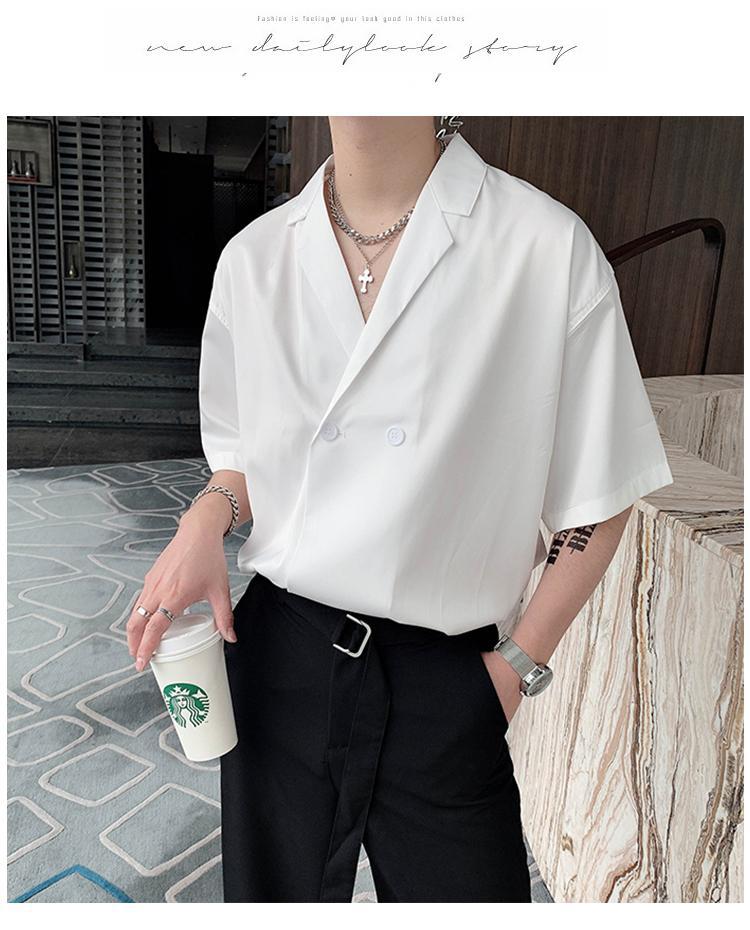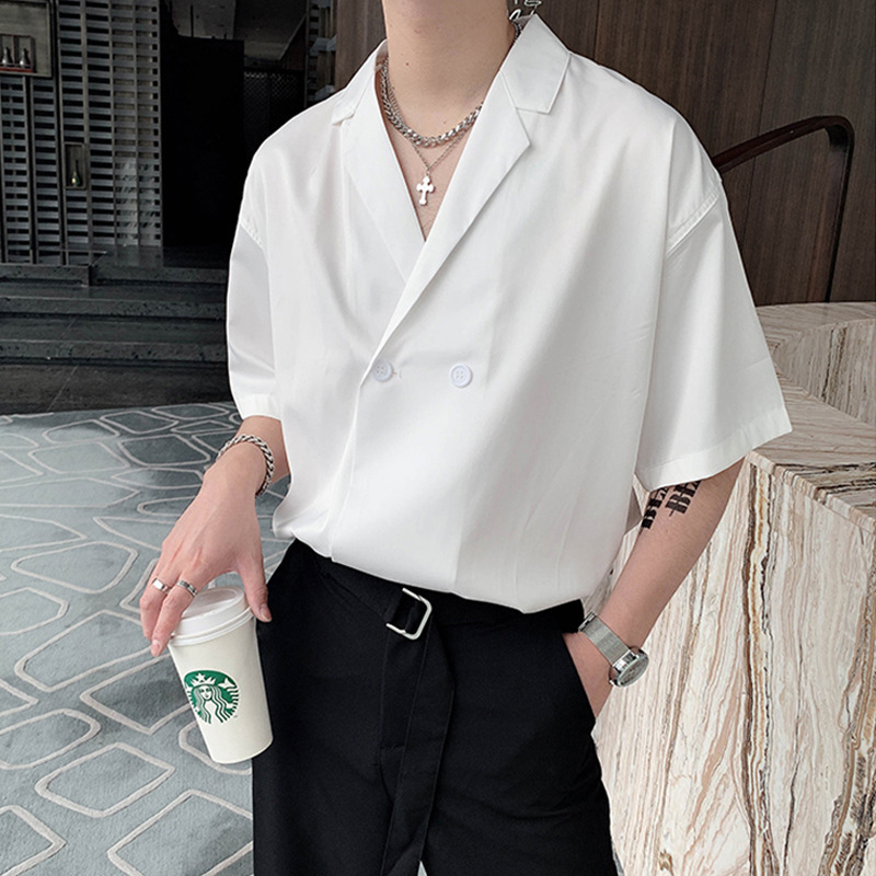 여름 틈새 금욕 스타일 잘 생긴 반팔 셔츠 남성 인터넷 연예인 라이트 럭셔리 한국 스타일 드레이프 정장 칼라 셔츠 헤어 스타일리스트