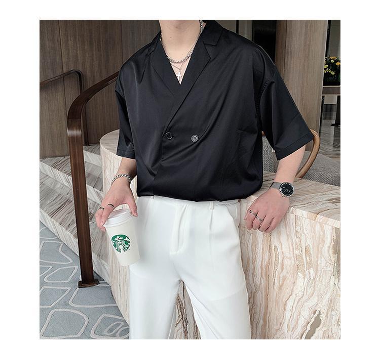 여름 틈새 금욕 스타일 잘 생긴 반팔 셔츠 남성 인터넷 연예인 라이트 럭셔리 한국 스타일 드레이프 정장 칼라 셔츠 헤어 스타일리스트스토어 가기
