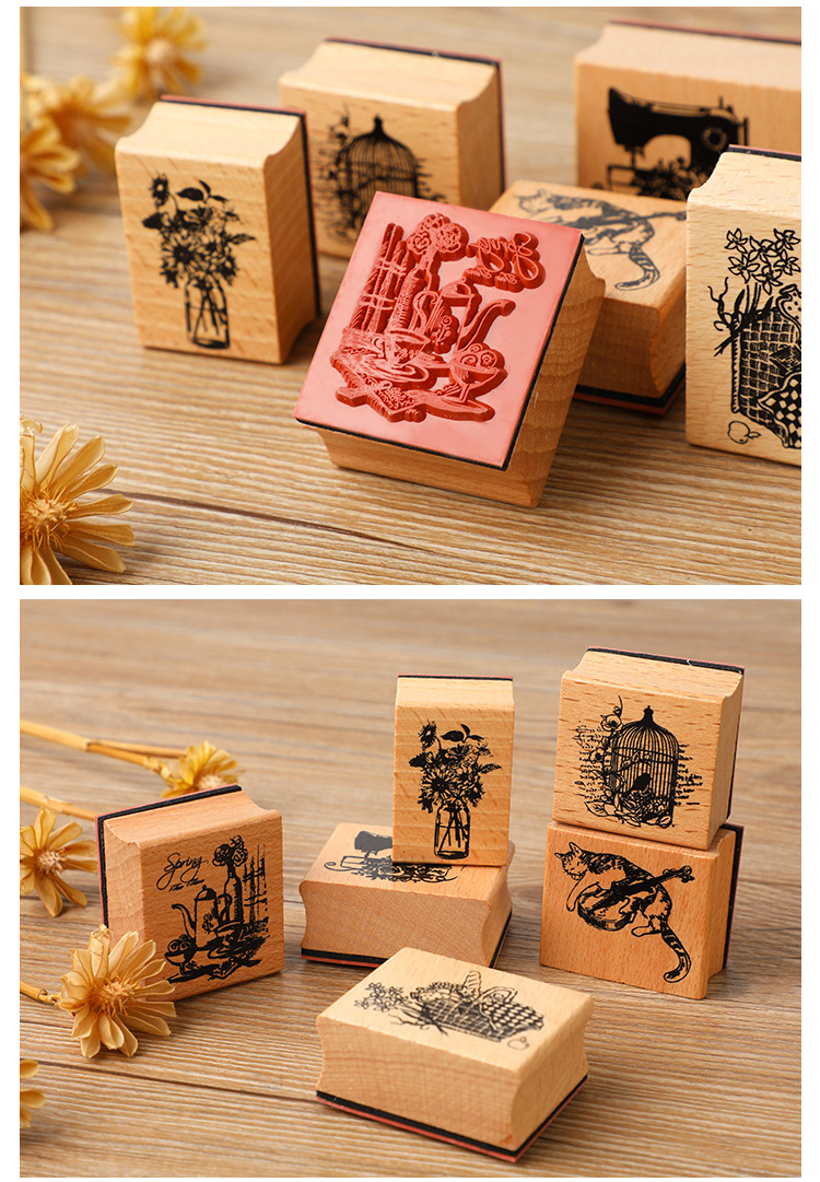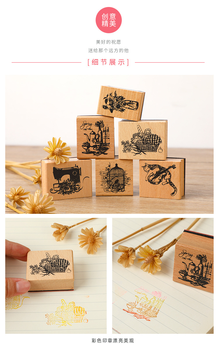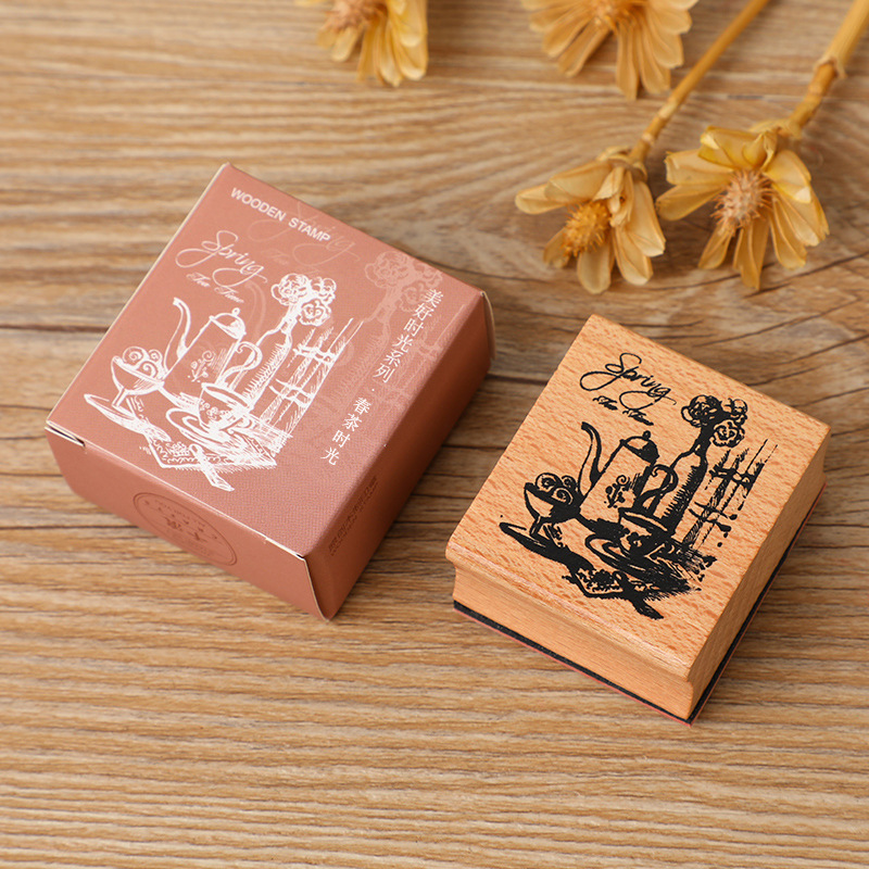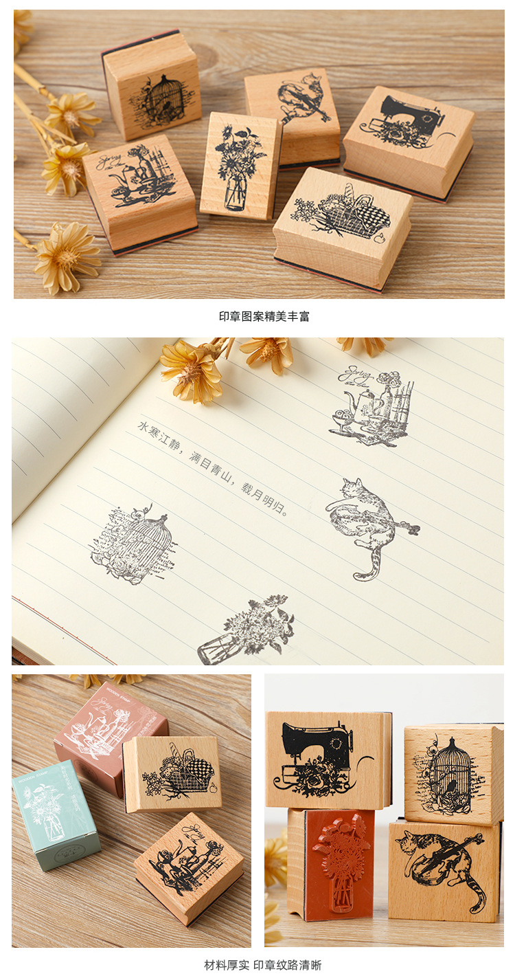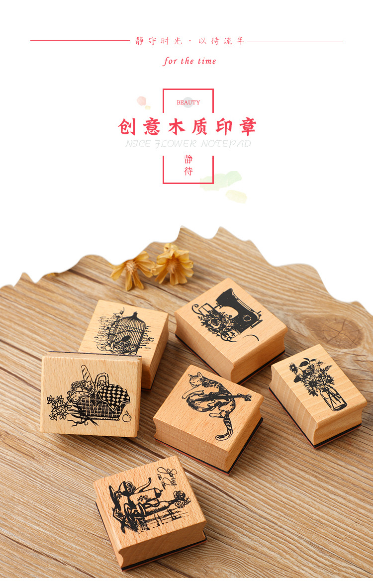 창조적 인 문구 좋은 시간 손 계정 인감 DIY 복고풍 예술 매일 장식 나무 인감 6 선택스토어 가기