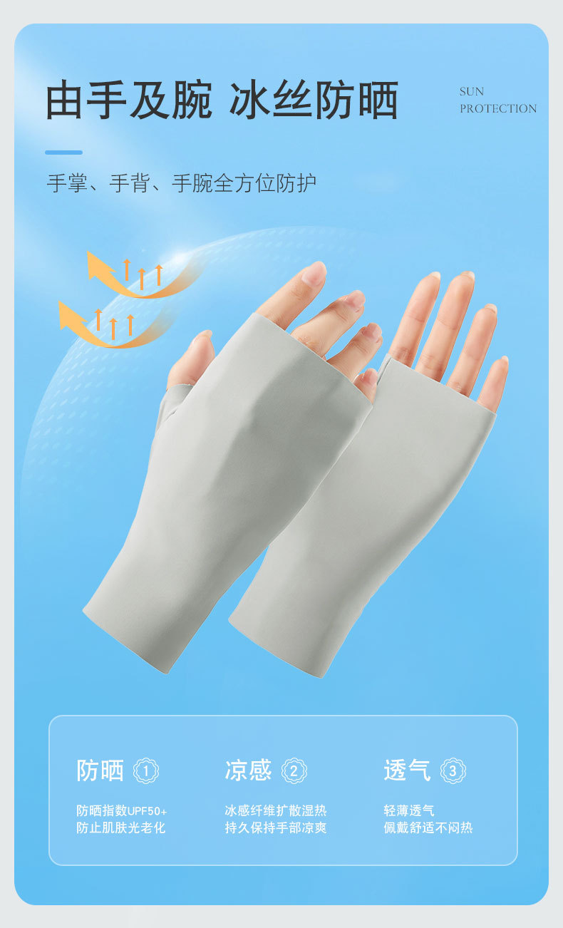 여성용 여름 나일론 아이스 실크 자외선 차단 매니큐어용 UV 차단 UPF50+ 야외 운전용 얇은 반손가락 학생용 장갑