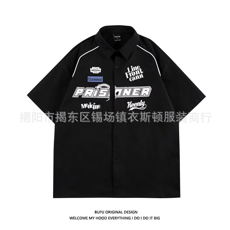 유럽과 미국의 최신 유행 브랜드 레트로 Ruffian 잘 생긴 튀김 스트리트 셔츠 재킷 남성과 여성의 여름 느슨한 고급 감각 작업복 반팔 셔츠스토어 가기