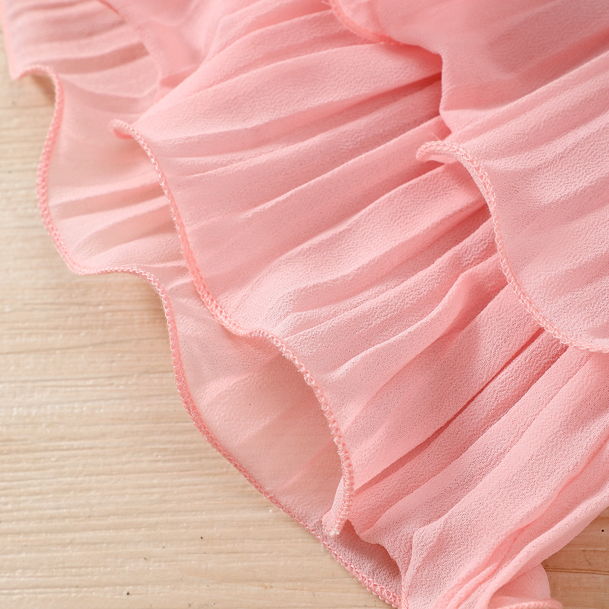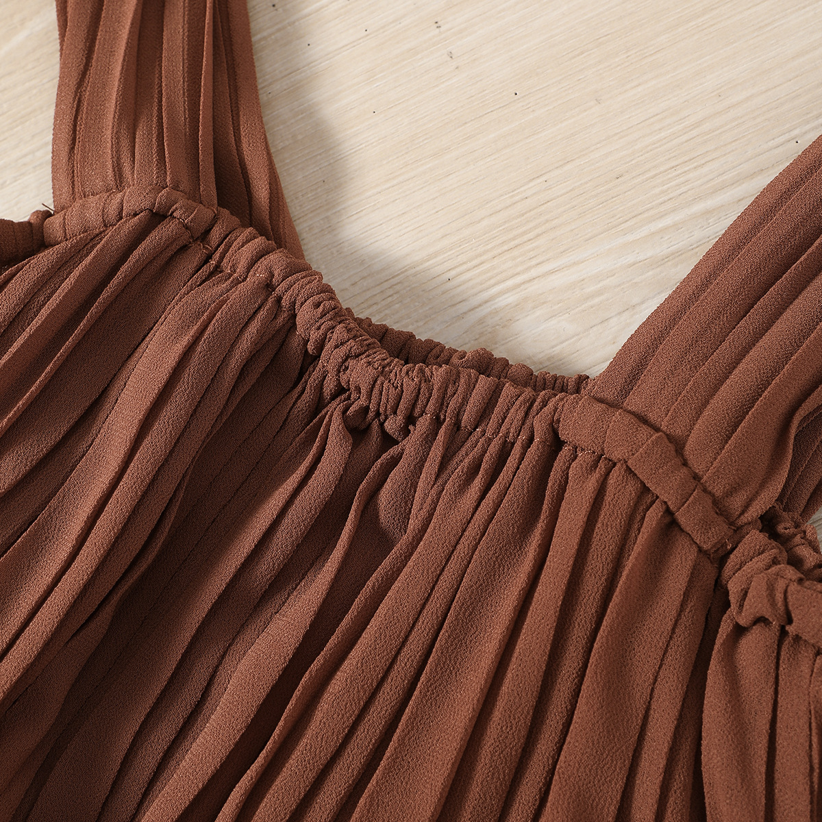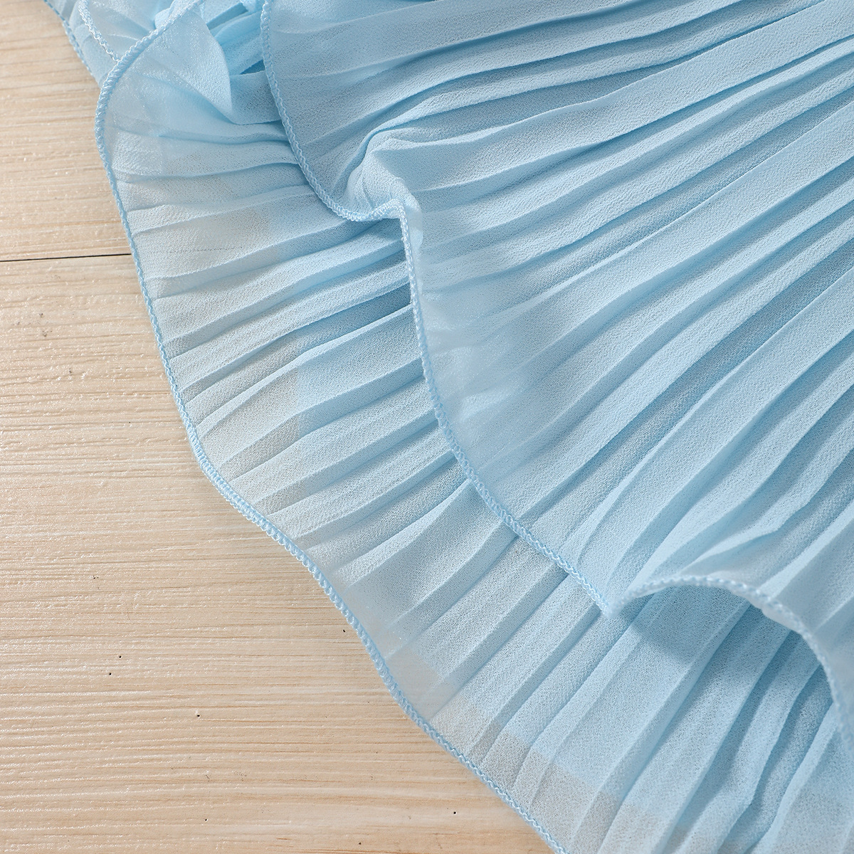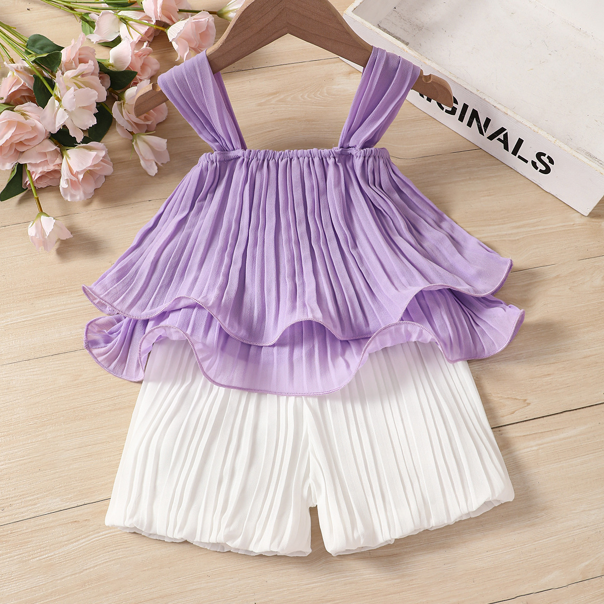크로스 보더 INS 어린이와 소녀 여름 주름 쉬폰 슬링 단색 스커트 탑 반바지 해변 세트