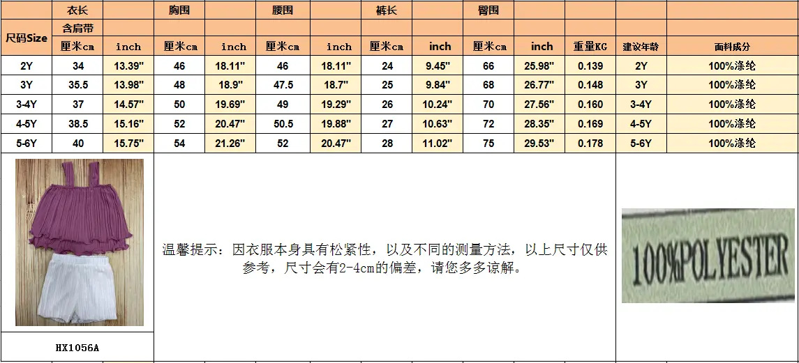 크로스 보더 INS 어린이와 소녀 여름 주름 쉬폰 슬링 단색 스커트 탑 반바지 해변 세트스토어 가기