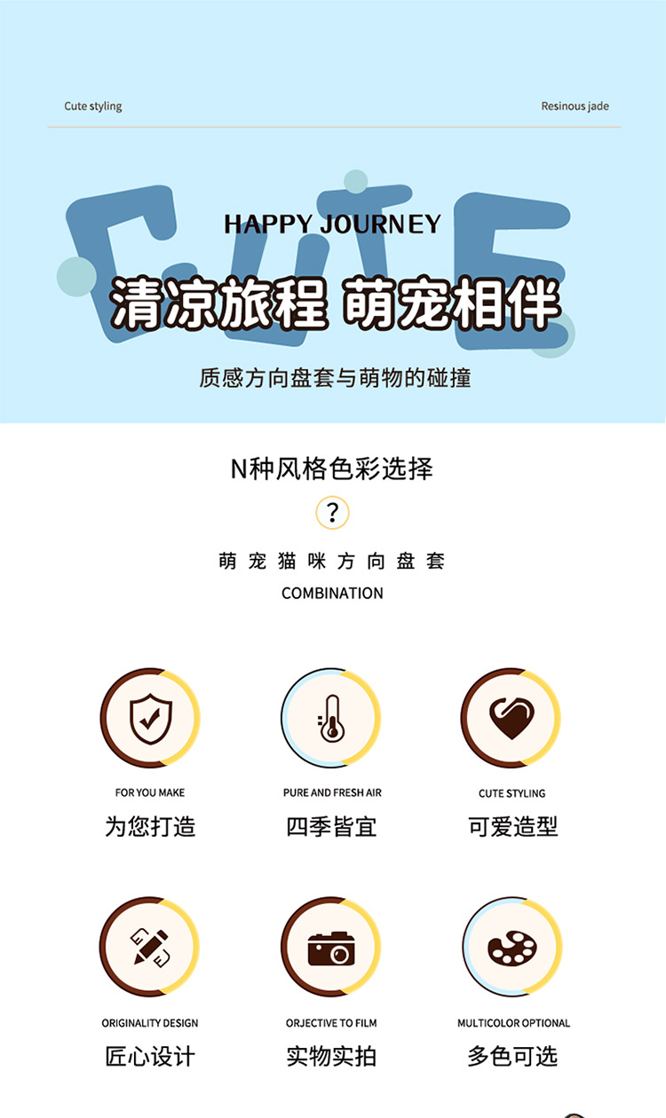 2023 새로운 MengMeng 멋진 고양이 기술 천 스티어링 휠 세트 머리카락 세대