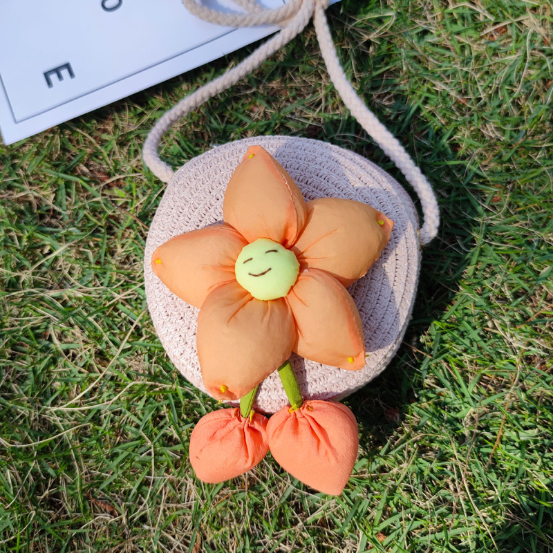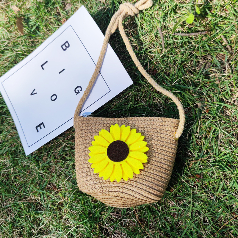 여름 밀짚 가방 짠 어린이 가방 여성용 귀여운 크로스 바디 소년과 소녀 미니 동전 지갑 경치 좋은 해변