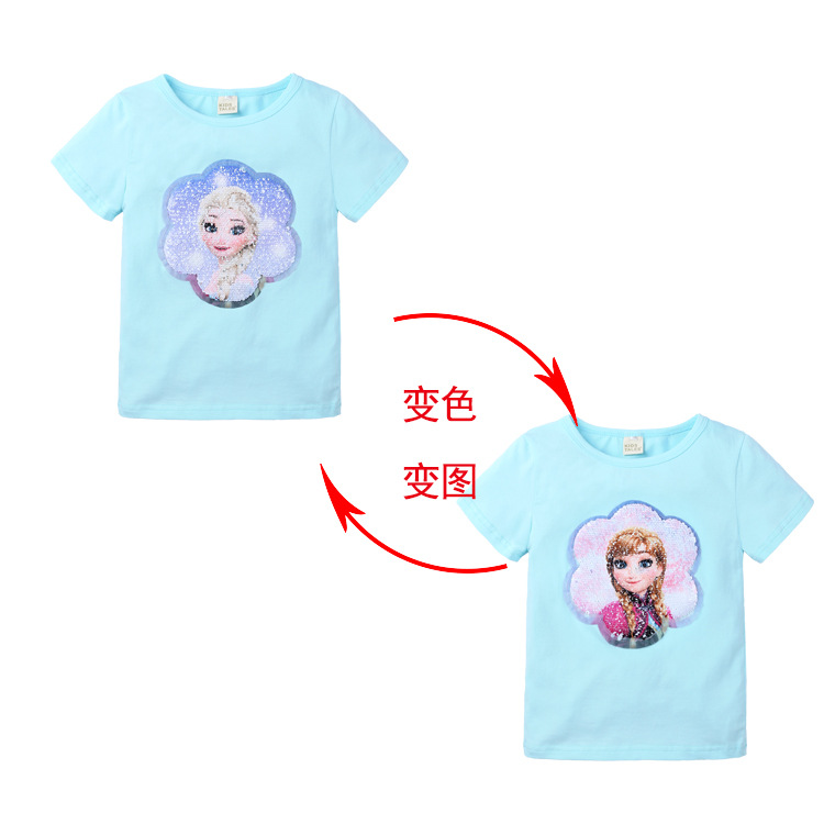 【产品名称】2024女童新款公主童装夏装短袖打底衫半袖亮片变图T恤速卖通代发