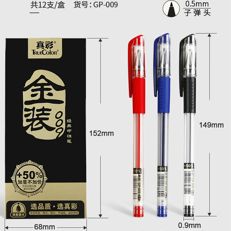 트루 컬러 젤 펜 골드 009 물 펜 총알 0.5mm 사무실 사업 서명 펜 테스트 총알 스페셜