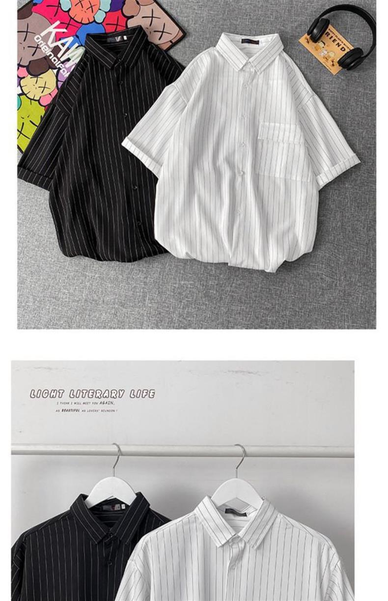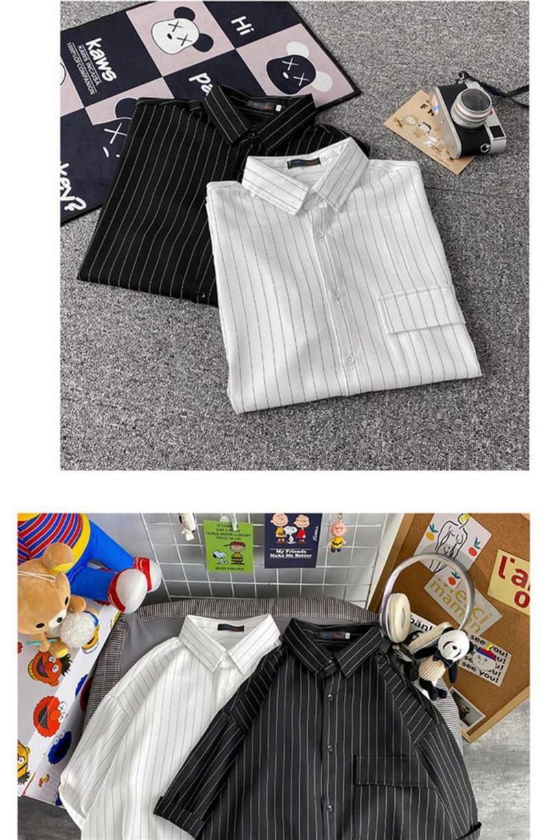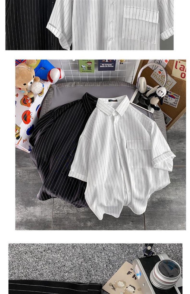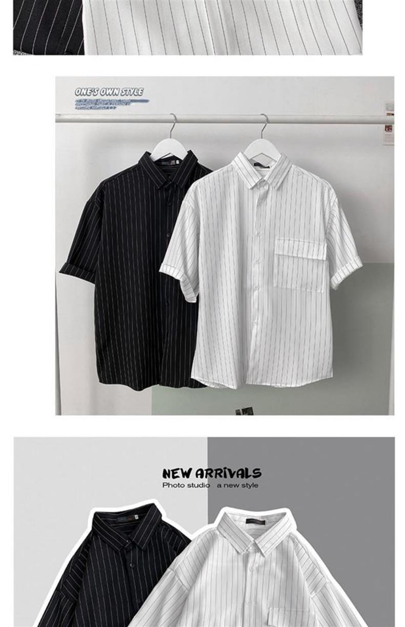 남자 여름 2023 홍콩 스타일 일본식 캐주얼 느슨한 세로 줄무늬 셔츠 반팔 한국식 반팔 셔츠스토어 가기