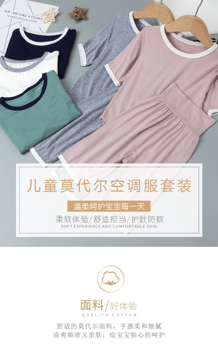 어린이 잠옷 모달 여름 얇은 여성의 가정 의류 소년 소녀 아기 에어컨 옷 세트 0055