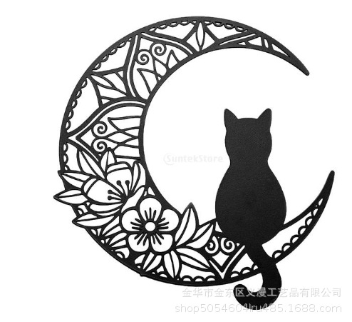 검은 고양이와 달 금속 벽 예술 검은 고양이 달 벽 산 벽 장식 고양이 연인스토어 가기