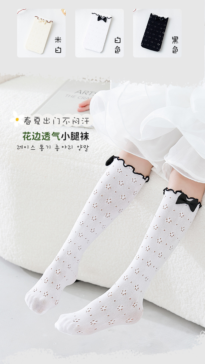 귀 가장자리 나비가있는 여아 긴 배럴 양말 얇은 아기 모기 방지 메쉬 다리가없는 어린이 높은 배럴 송아지 그물 양말스토어 가기