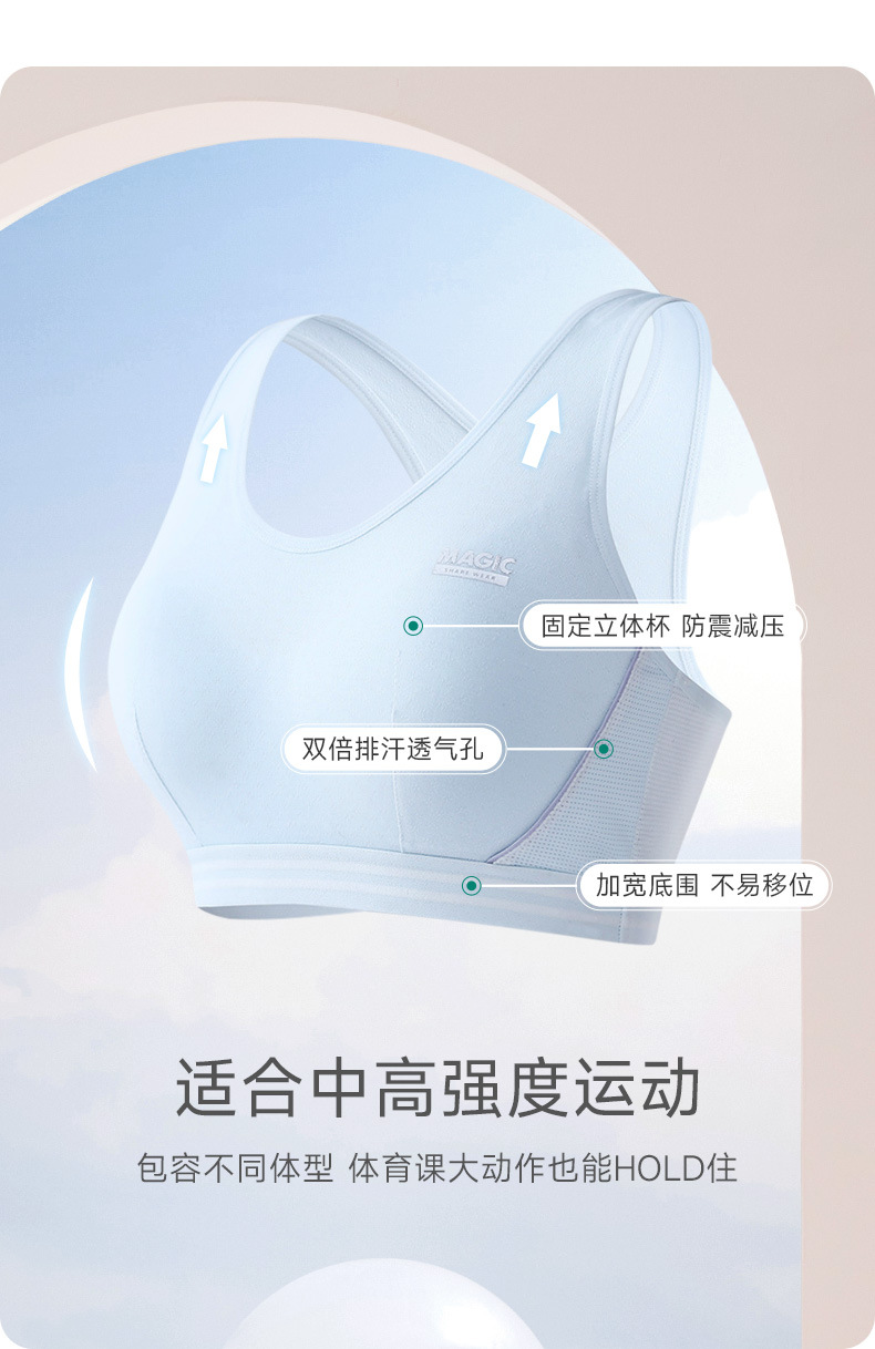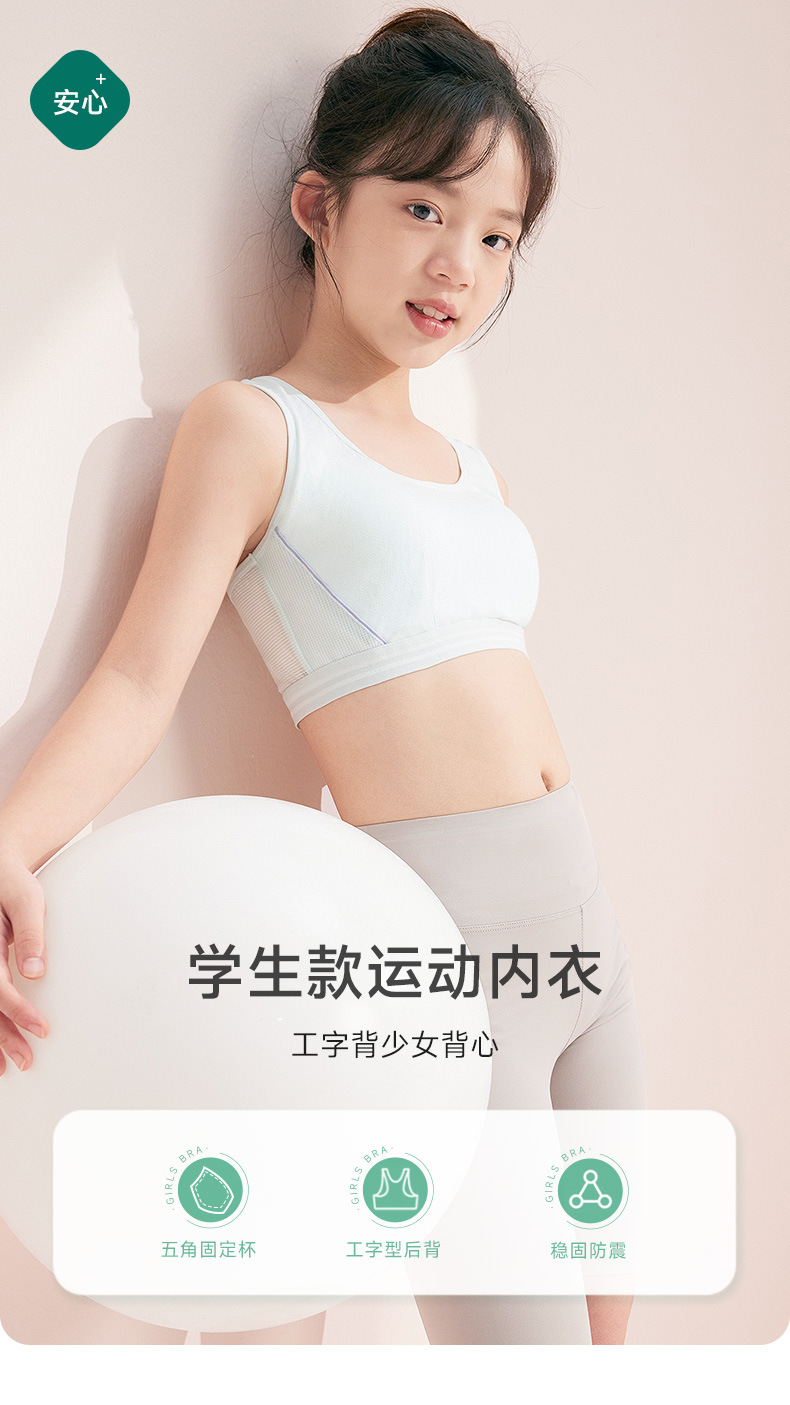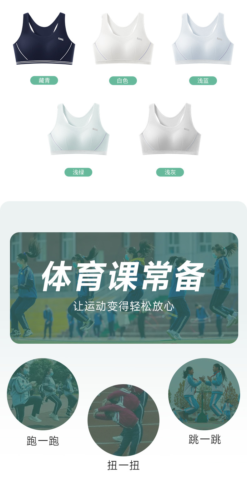 固定杯二阶段少女体育课运动内衣 夏季透气初中女学生背心式文胸