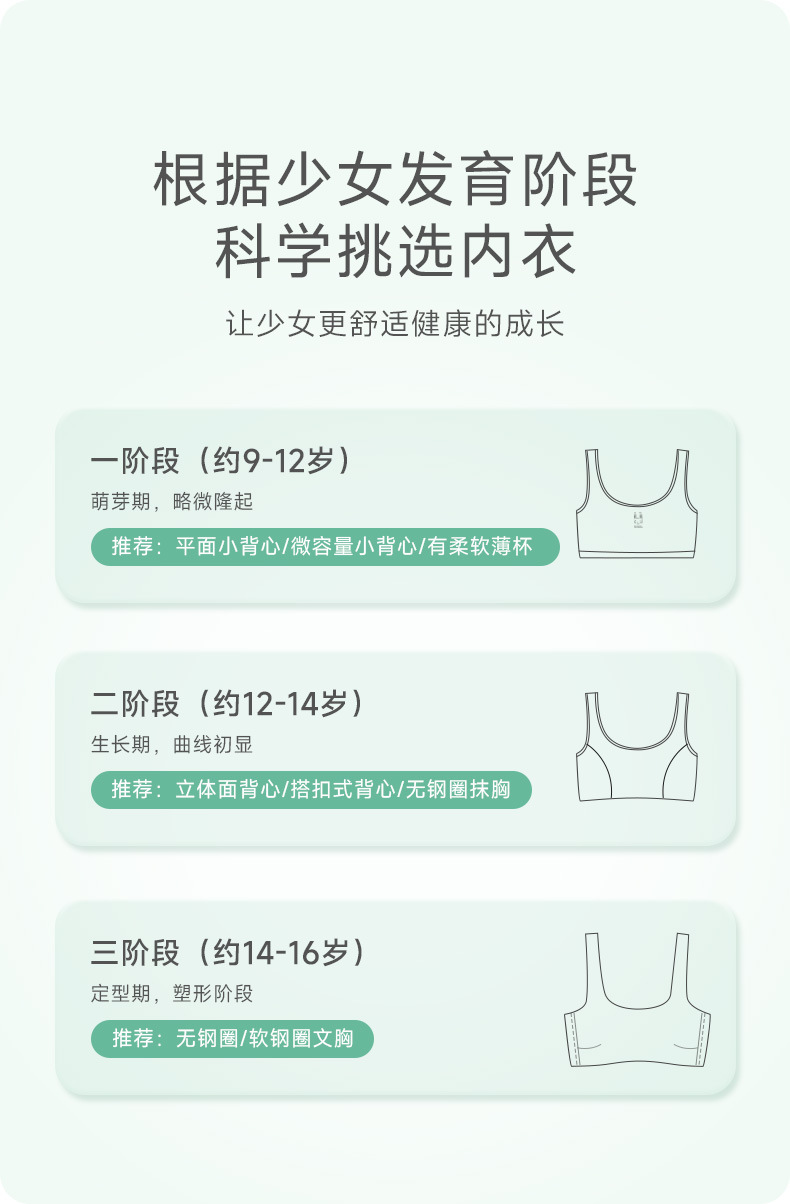 萌芽期一阶段小学生背心女童内衣 青春期女孩打底棉质少女内衣