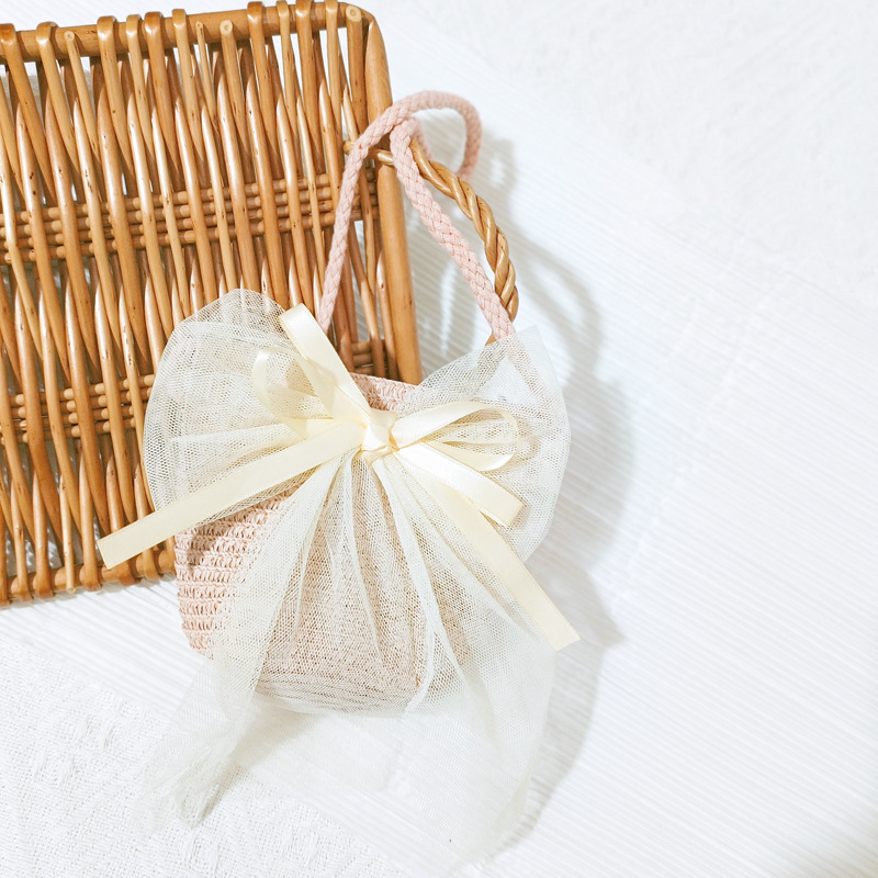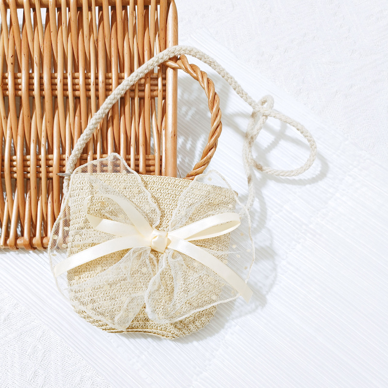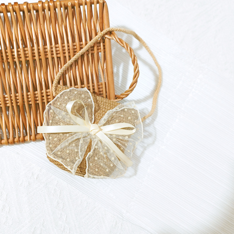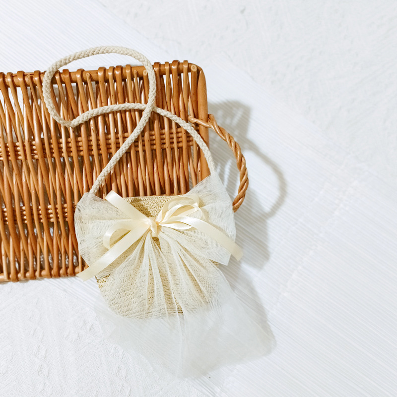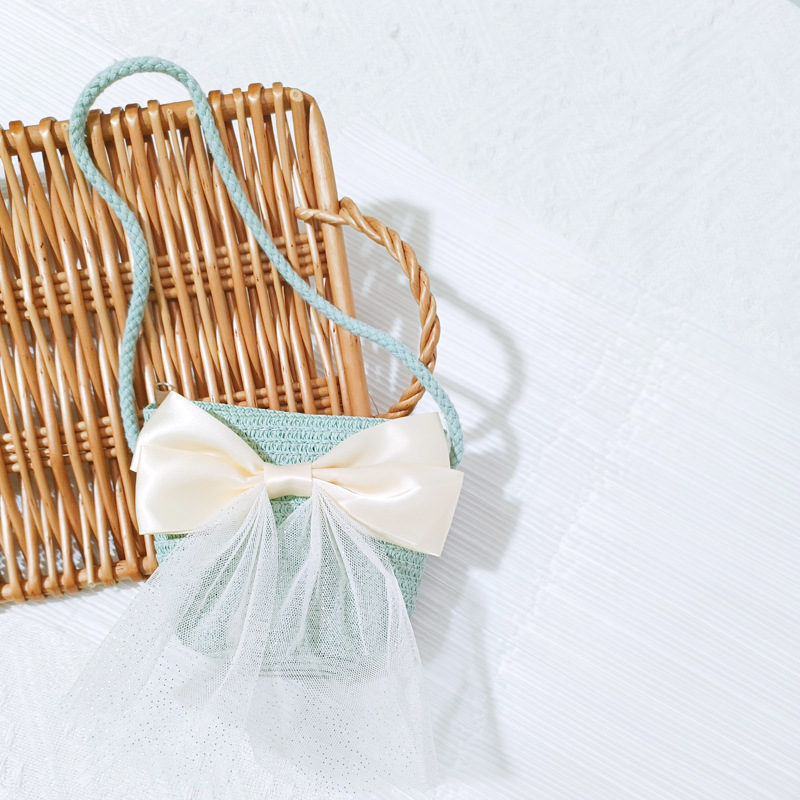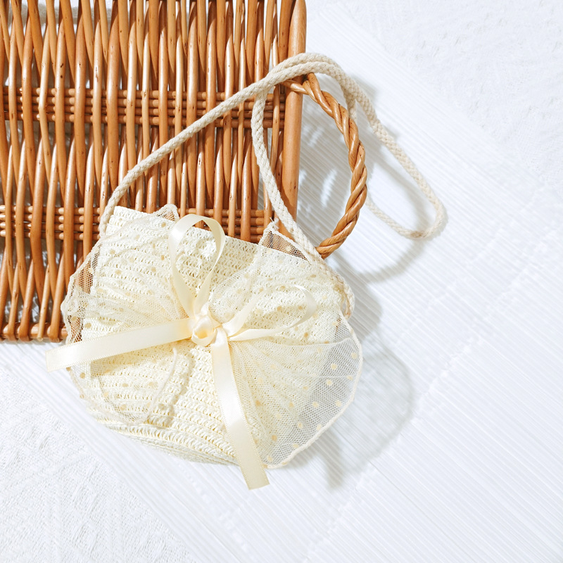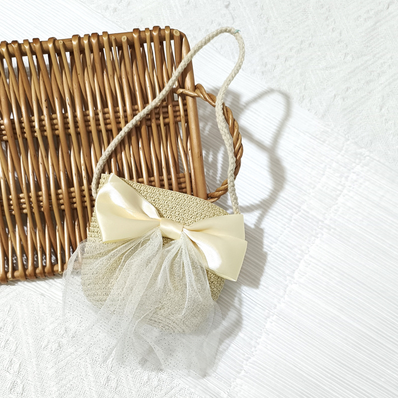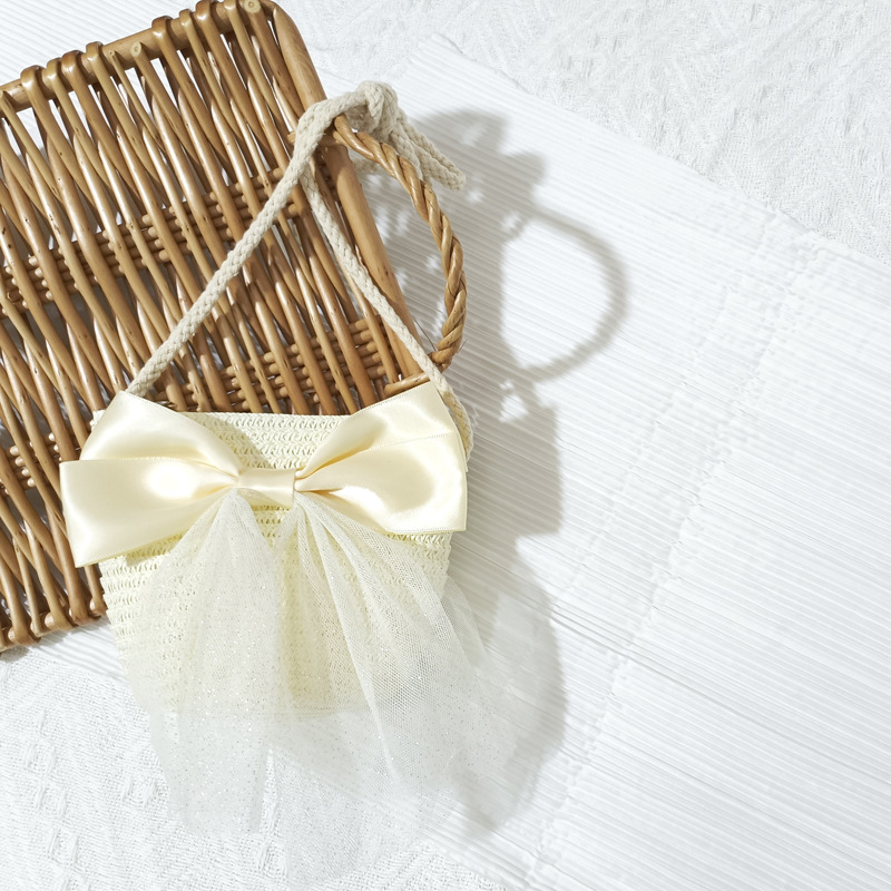 여자 착용 모양 메쉬 활 지퍼 작은 가방 사진 여름 해변 달콤한 어린이 동전 지갑 가방스토어 가기