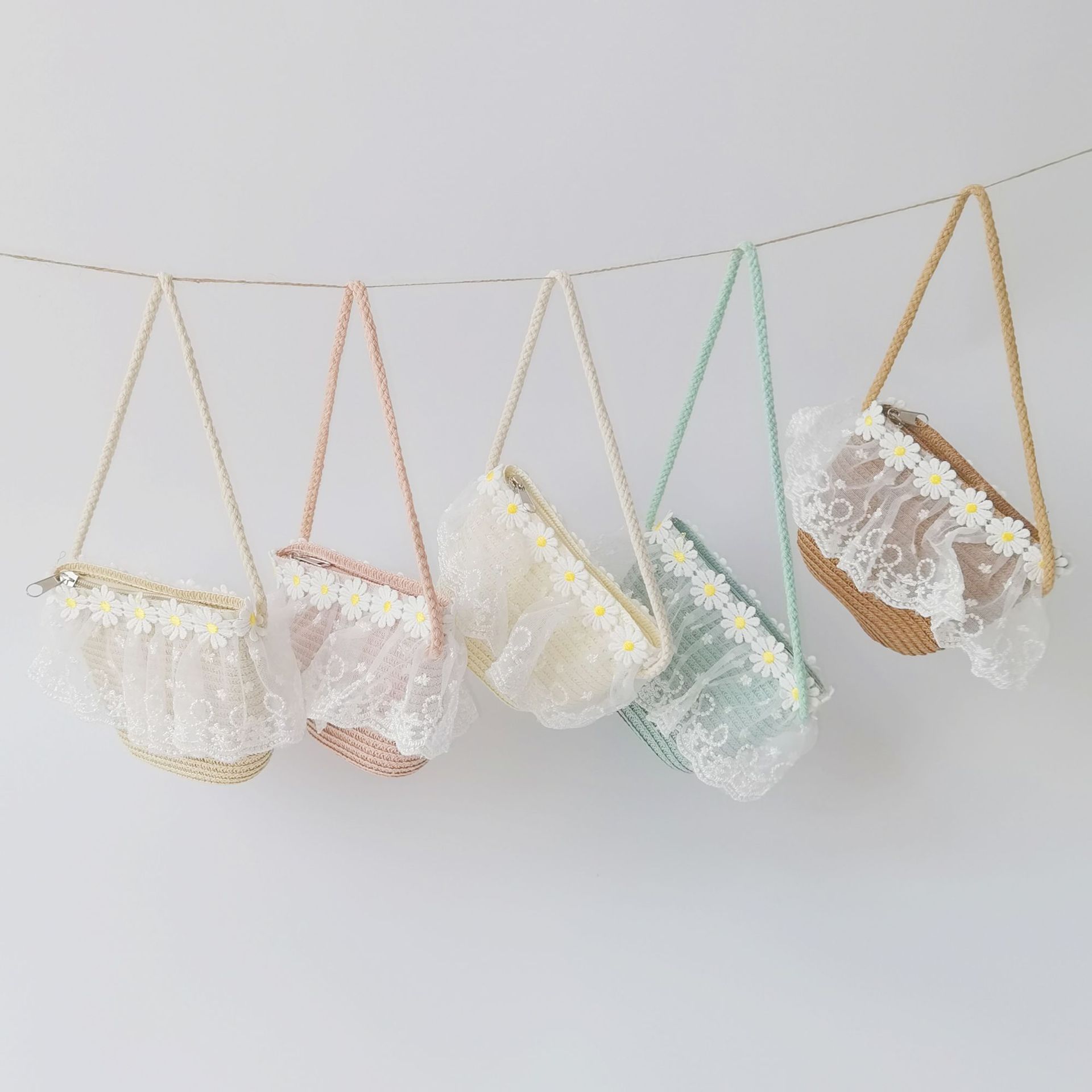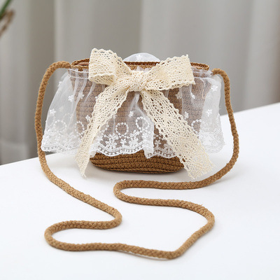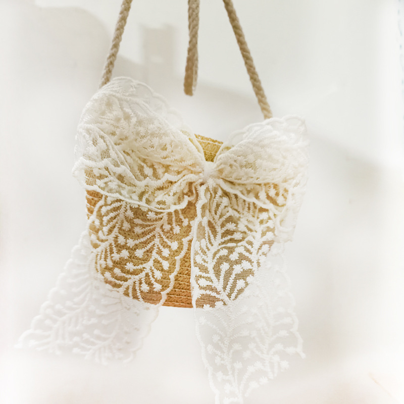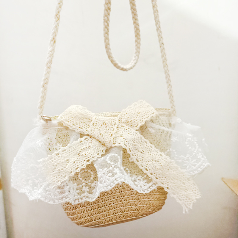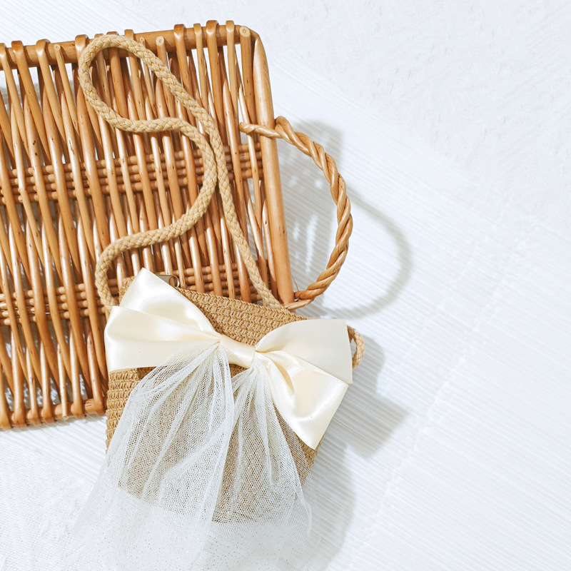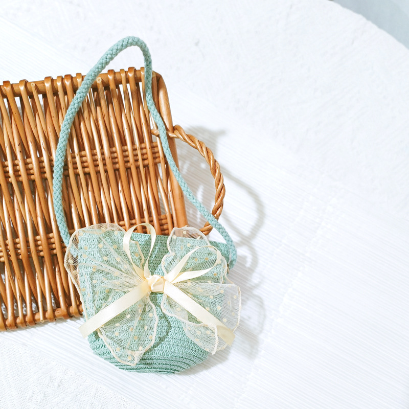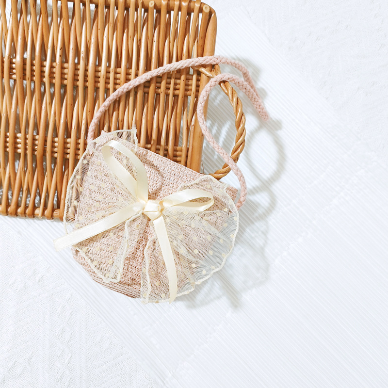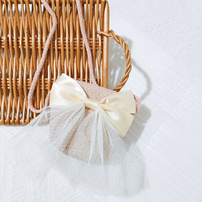 여자 착용 모양 메쉬 활 지퍼 작은 가방 사진 여름 해변 달콤한 어린이 동전 지갑 가방스토어 가기