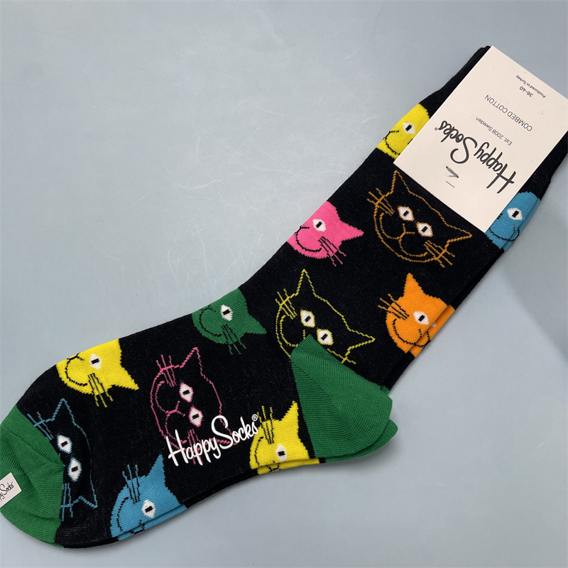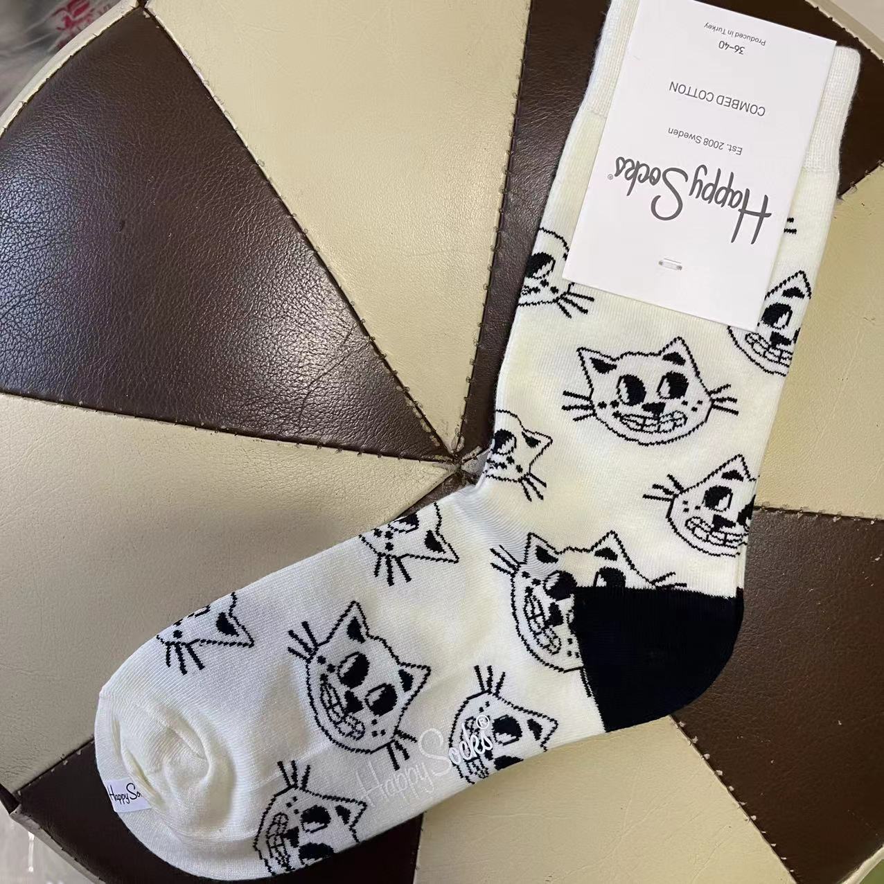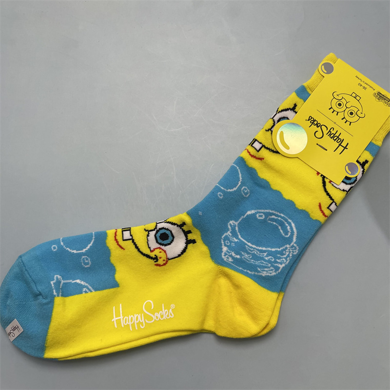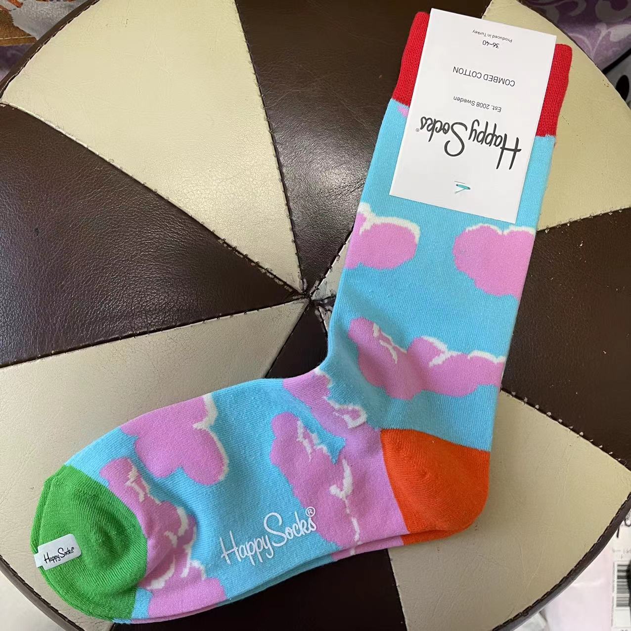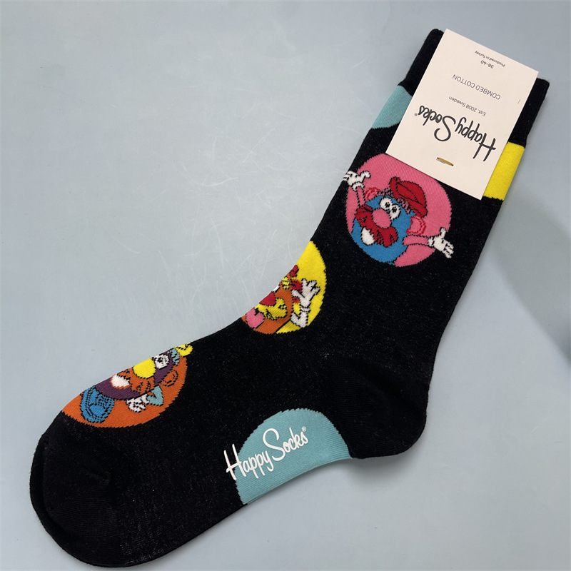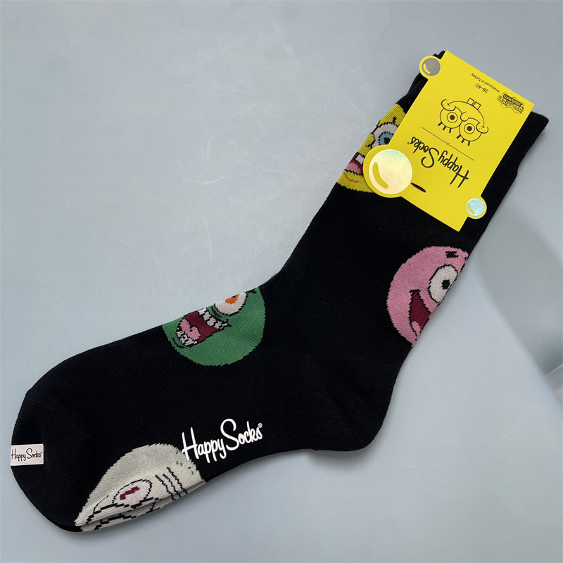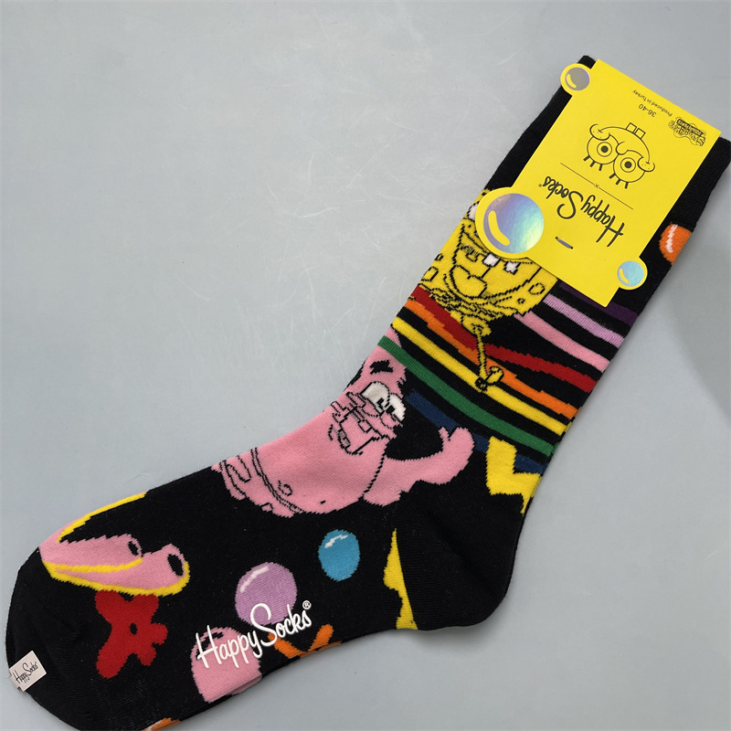 HappySocks 다채로운 양말 어린이 봄과 가을 유행 인터넷 연예인 만화 귀여운 중간 튜브 겉옷 거리 유행 양말스토어 가기