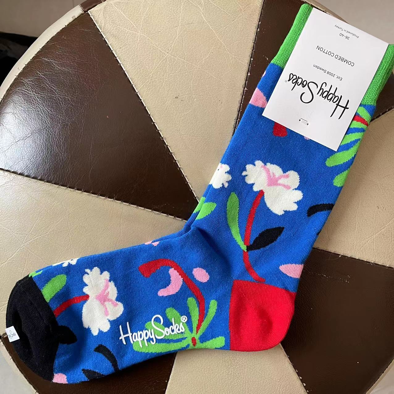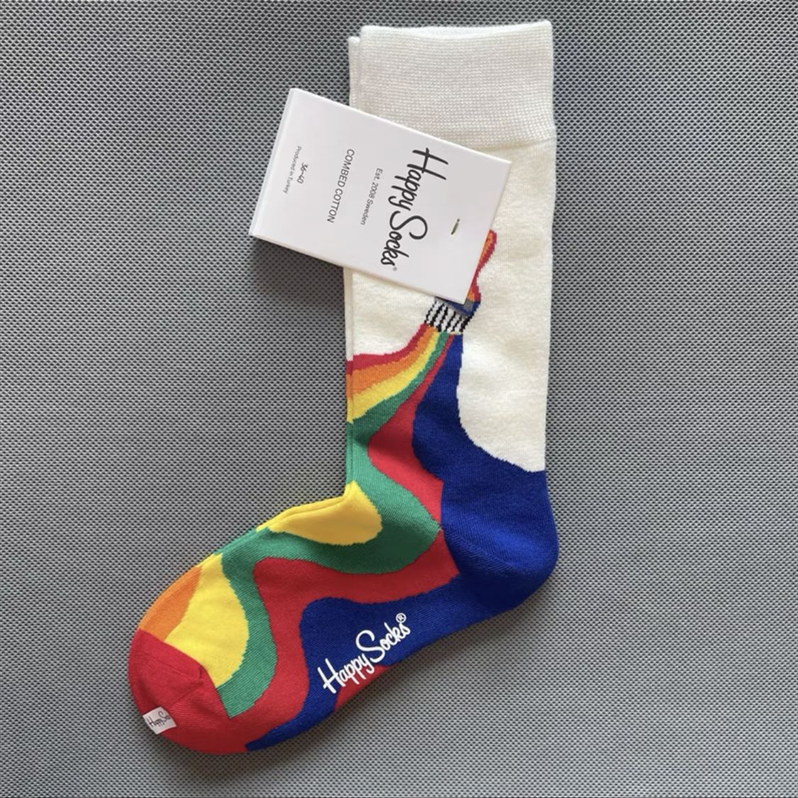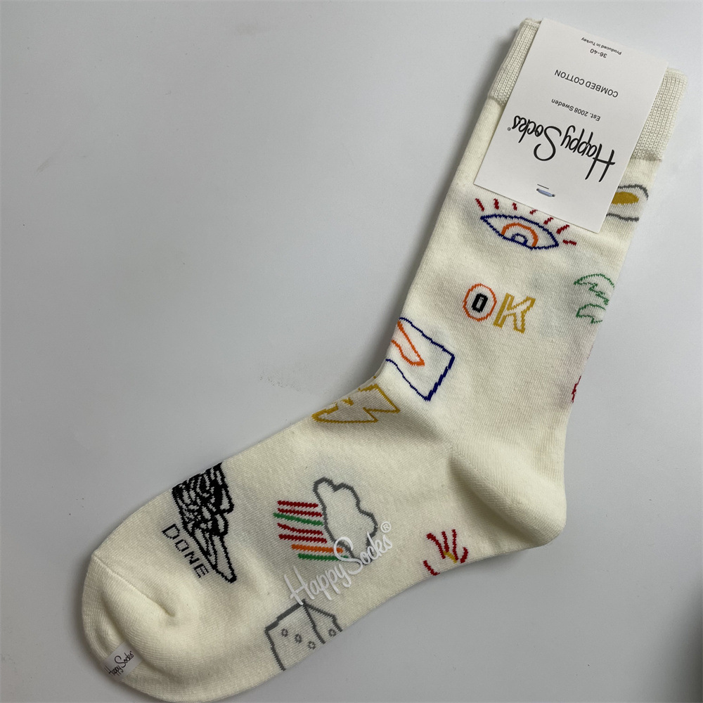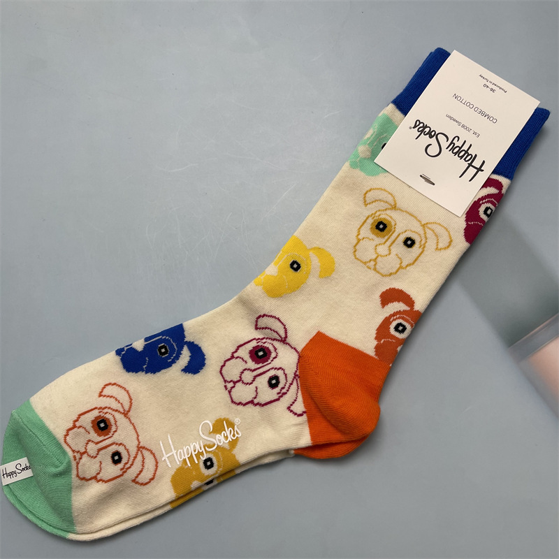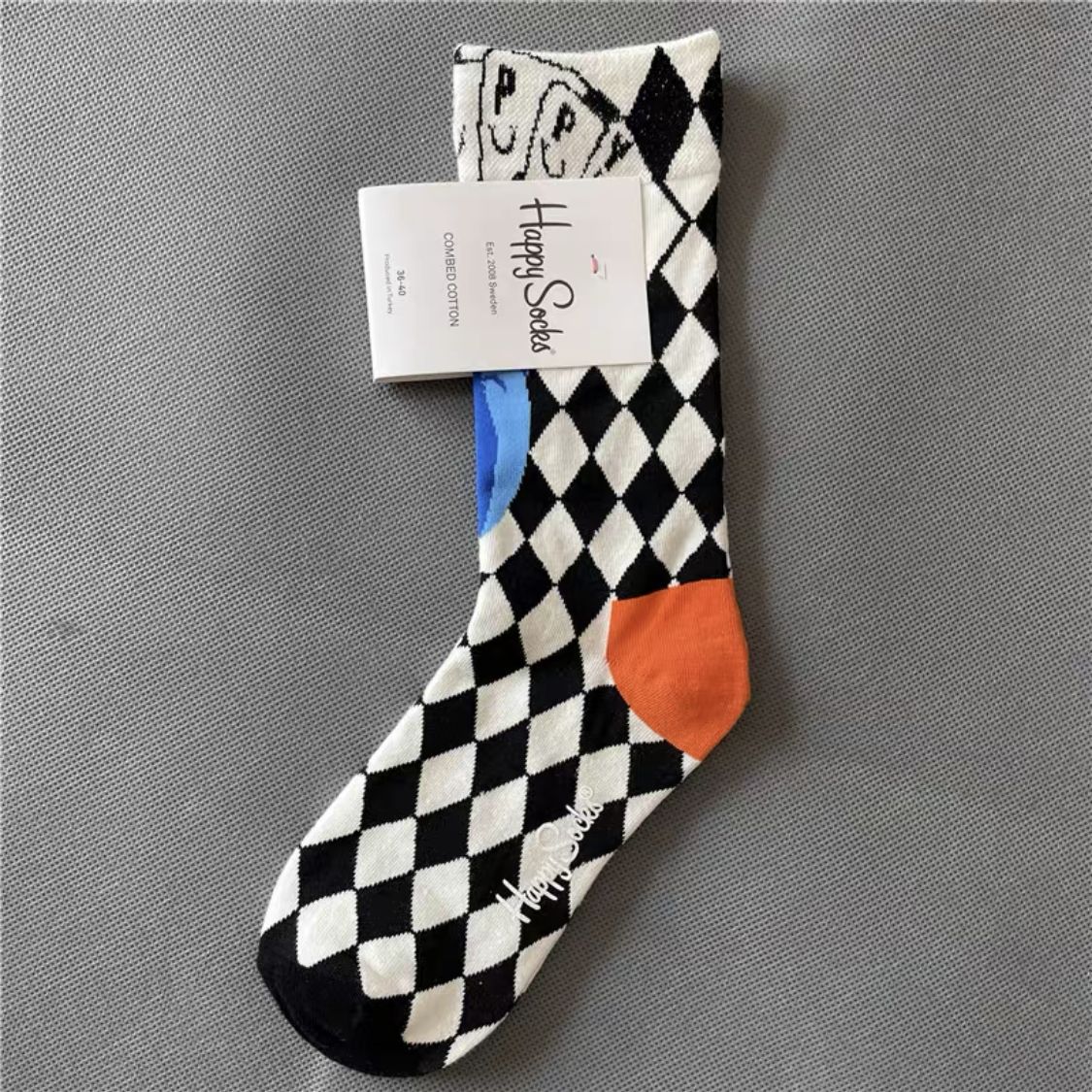 HappySocks 다채로운 양말 어린이 봄과 가을 유행 인터넷 연예인 만화 귀여운 중간 튜브 겉옷 거리 유행 양말스토어 가기