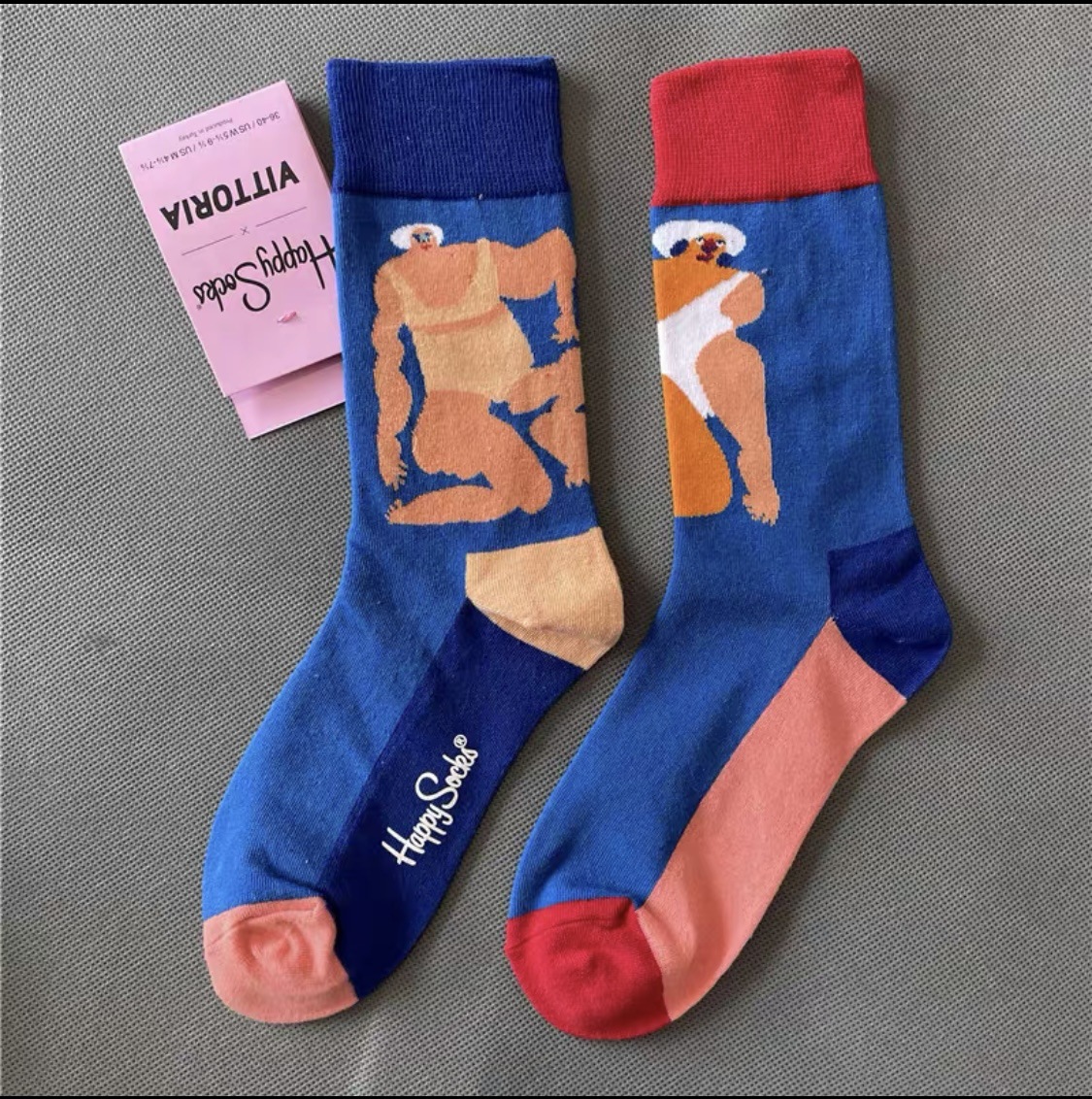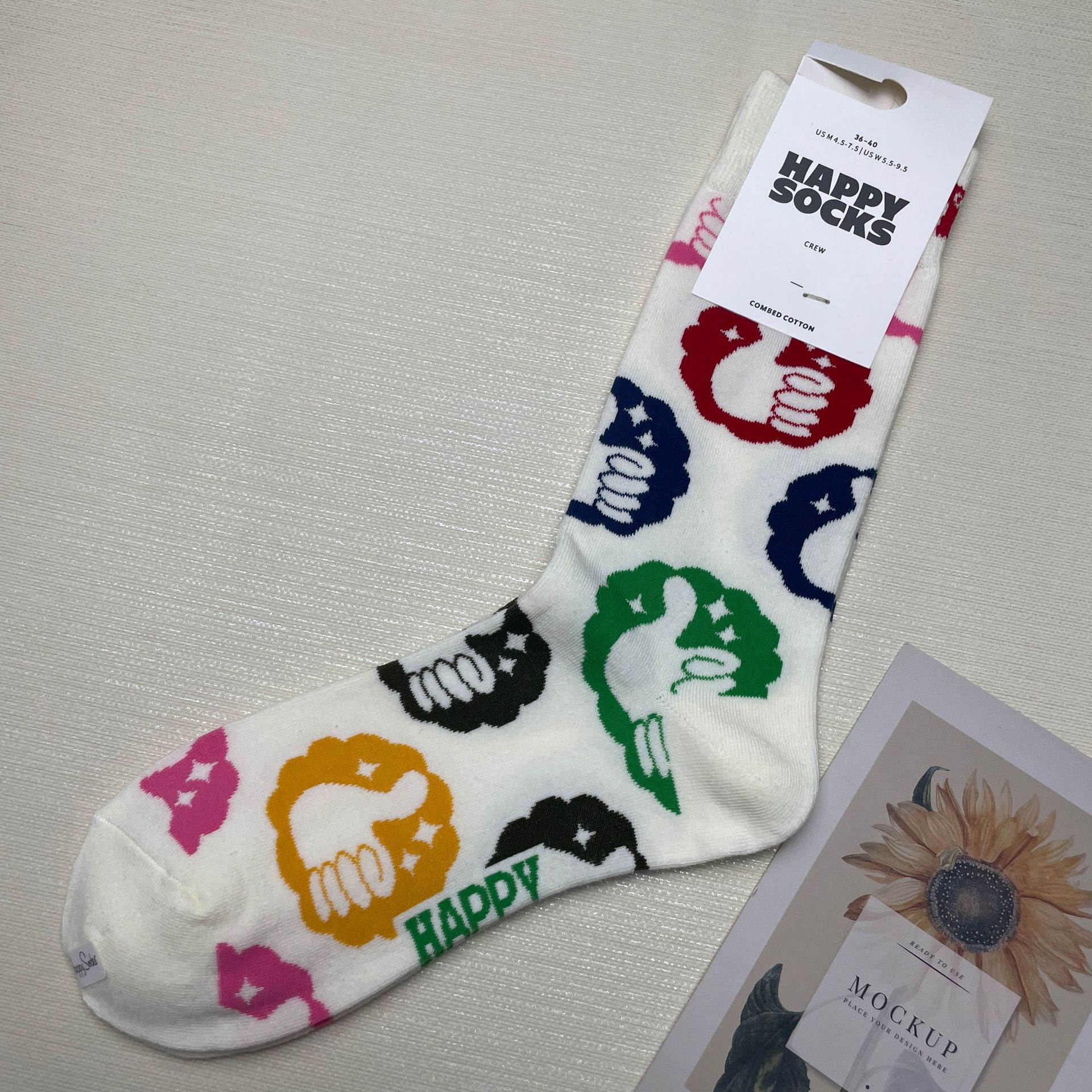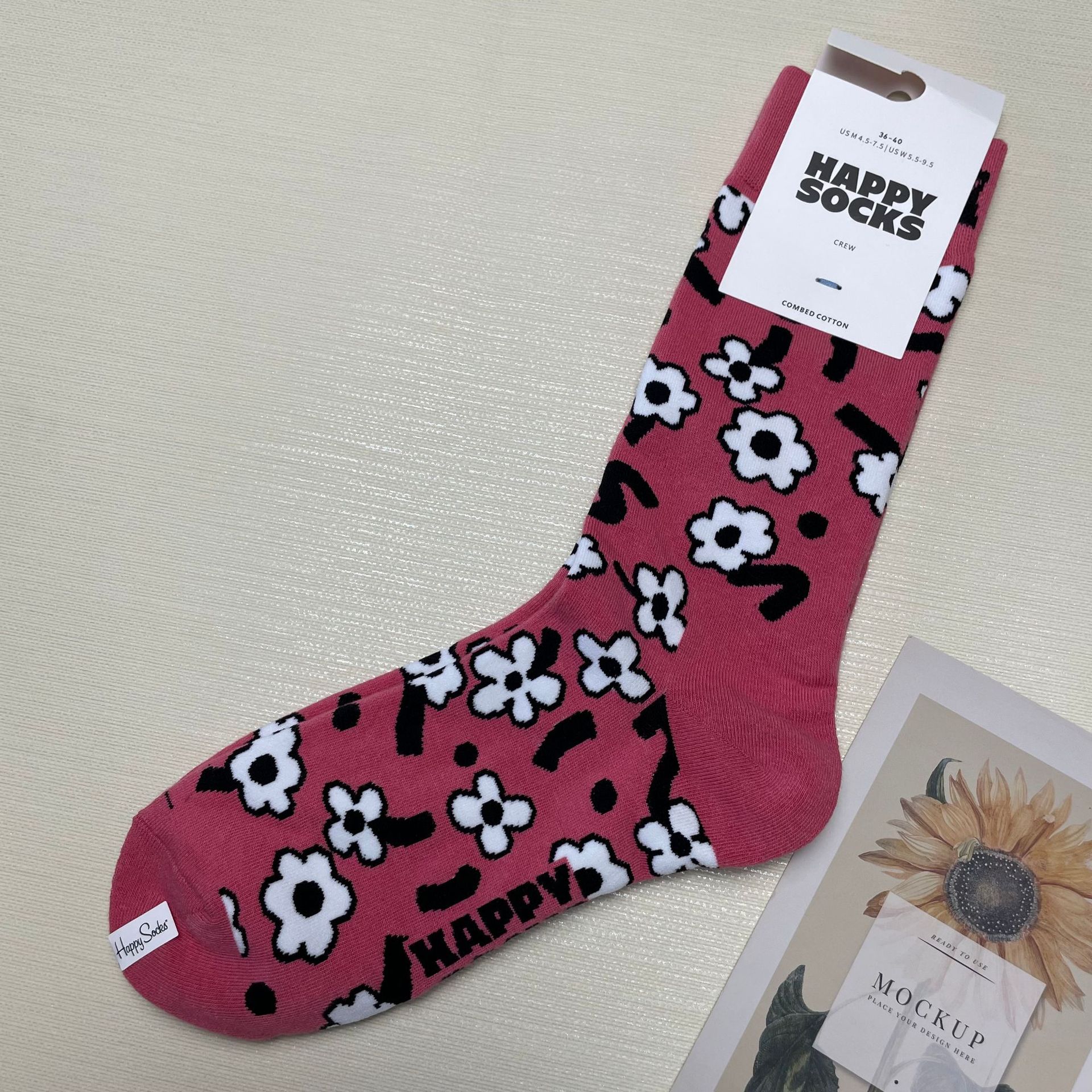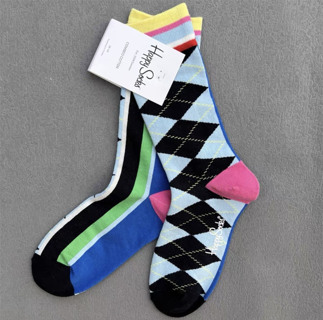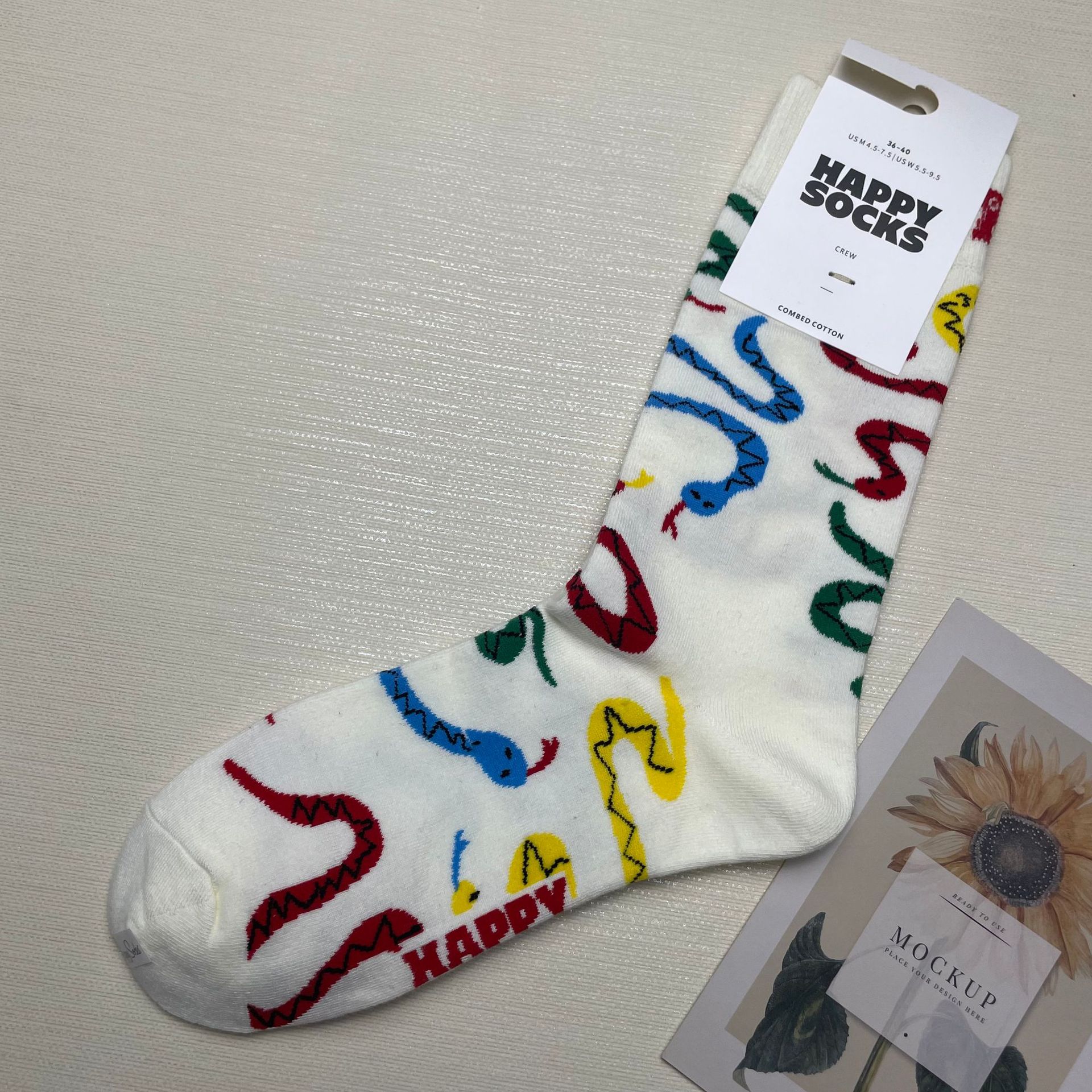 HappySocks 다채로운 양말 어린이 봄과 가을 유행 인터넷 연예인 만화 귀여운 중간 튜브 겉옷 거리 유행 양말스토어 가기