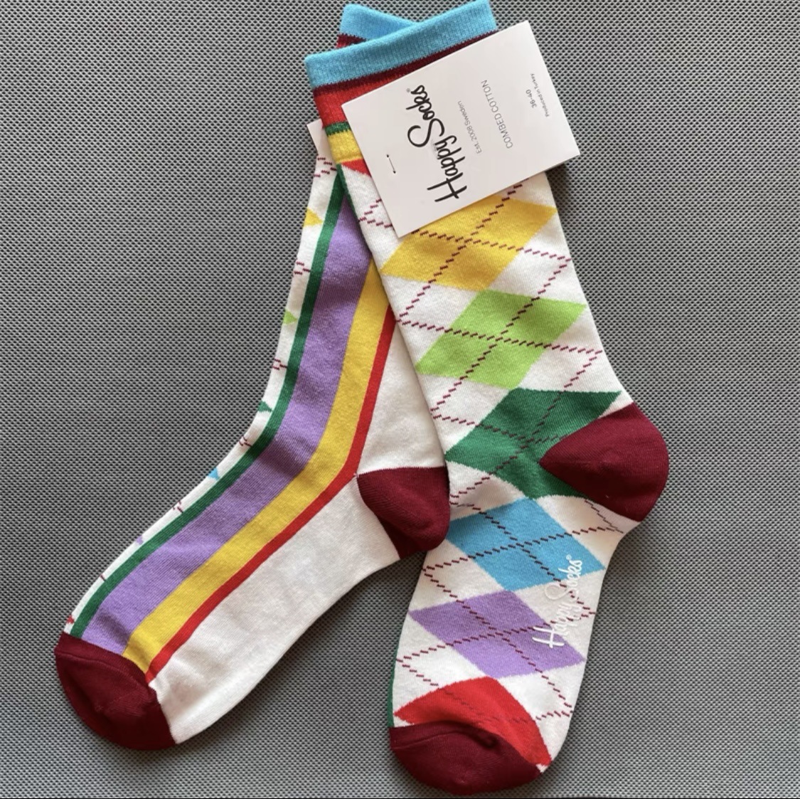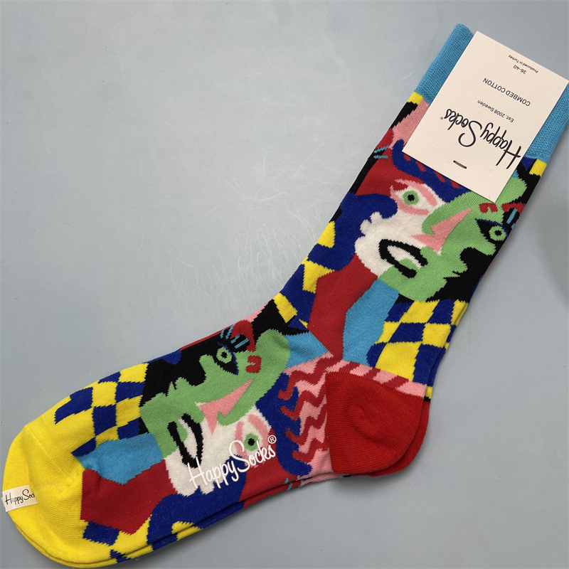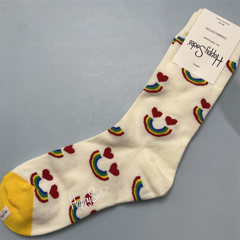 HappySocks 다채로운 양말 어린이 봄과 가을 유행 인터넷 연예인 만화 귀여운 중간 튜브 겉옷 거리 유행 양말