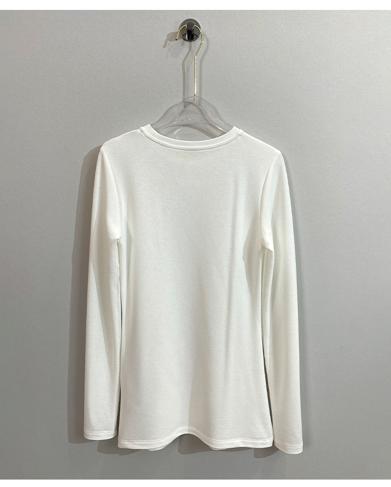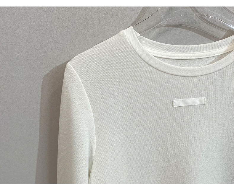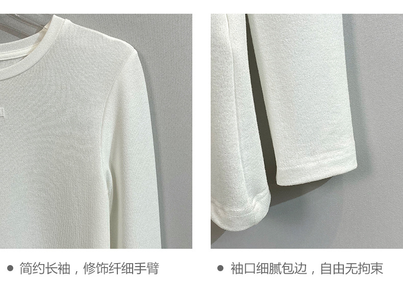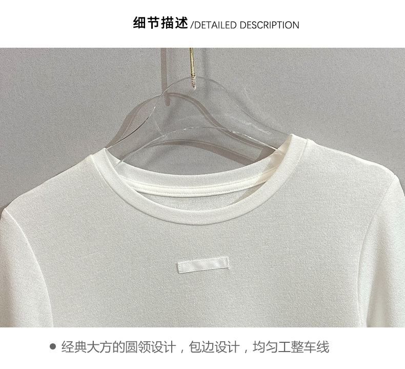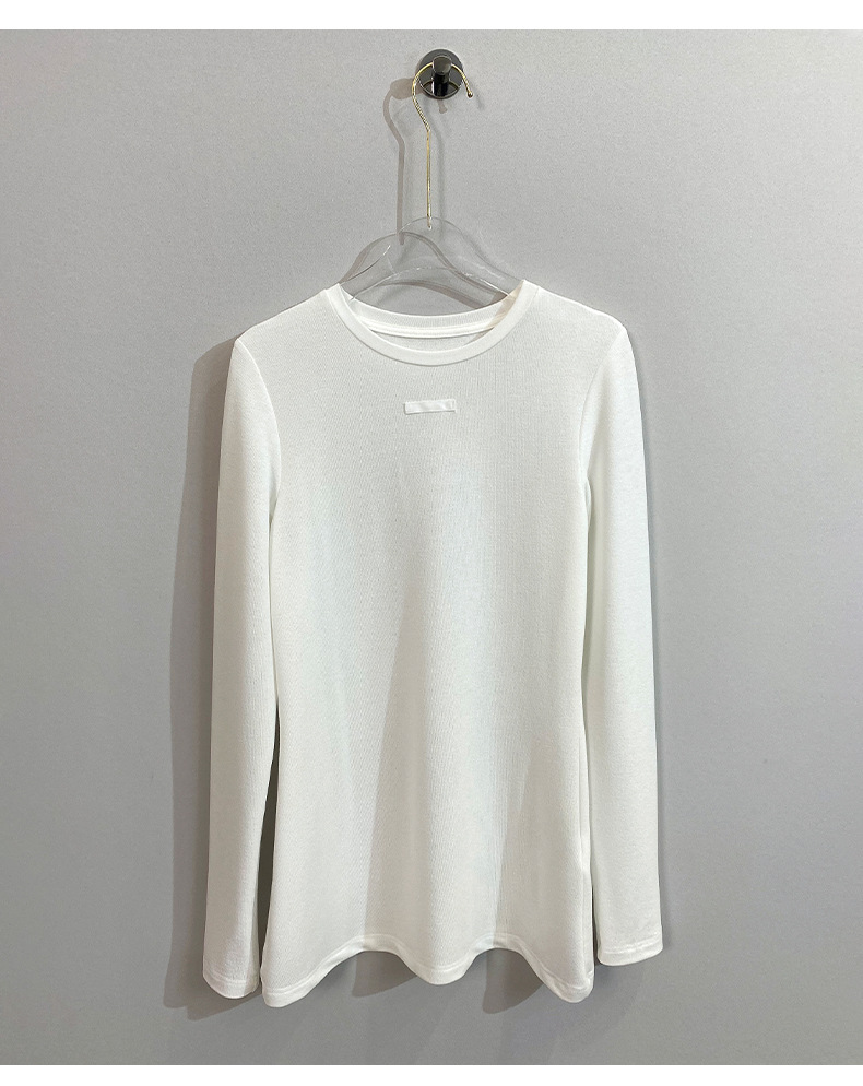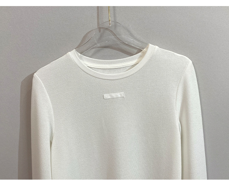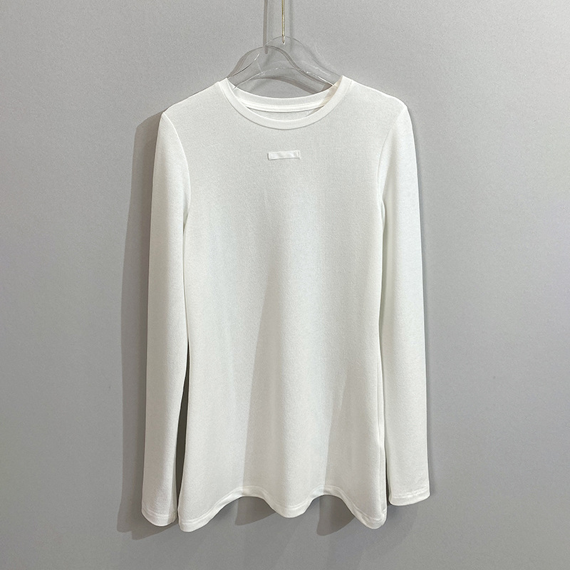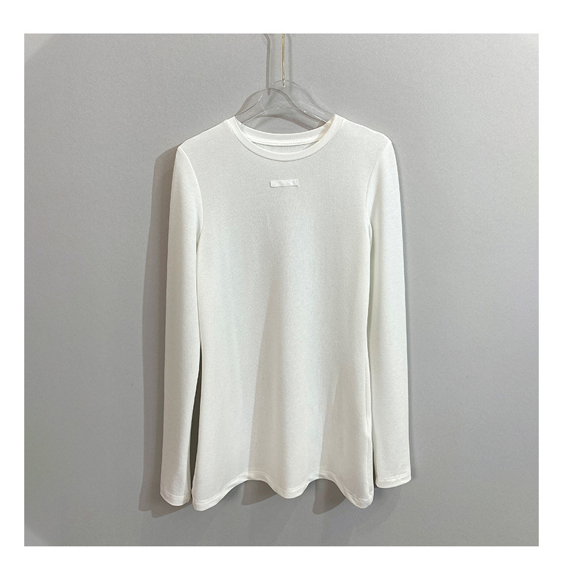 틈새 2023 여름 새로운 중간 길이 슬림 핏 긴소매 베이스 셔츠 탑 심플 화이트 크루 넥 티셔츠 여성용 트렌디스토어 가기