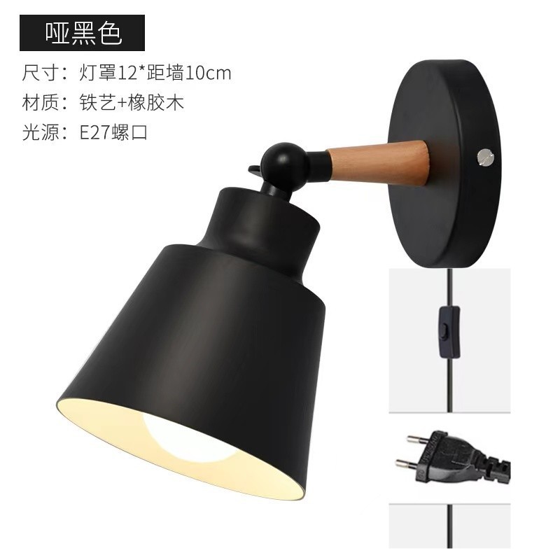 • 보조 커버 살구색 블랙 콘 나무 벽 램프 (블랙 플레이트) 플러그 와이어없이