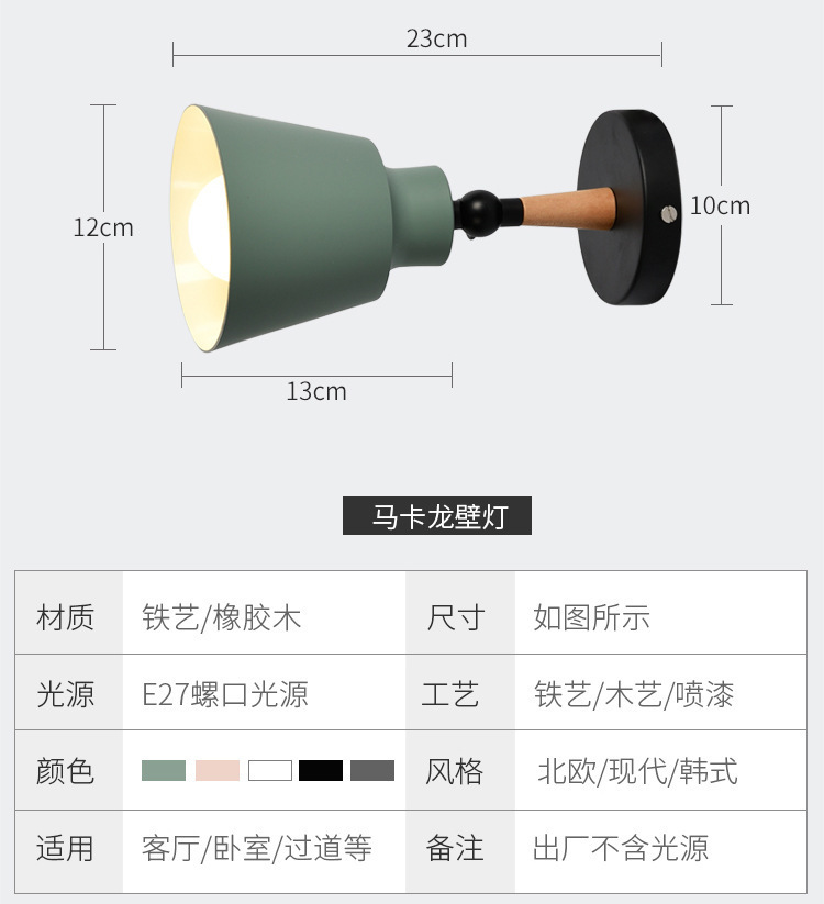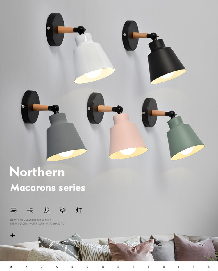 북유럽 현대 간단한 침실 벽 램프 미국 국가 철 마카롱 레스토랑 바 거실 TV 벽 램프