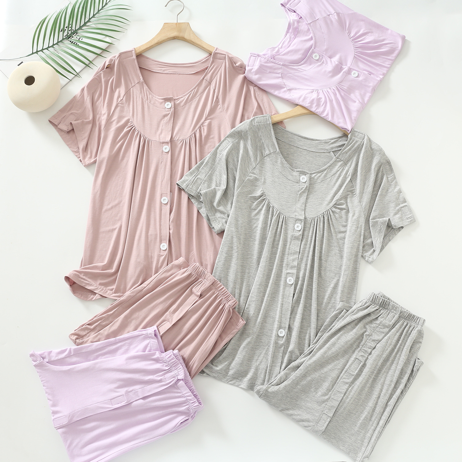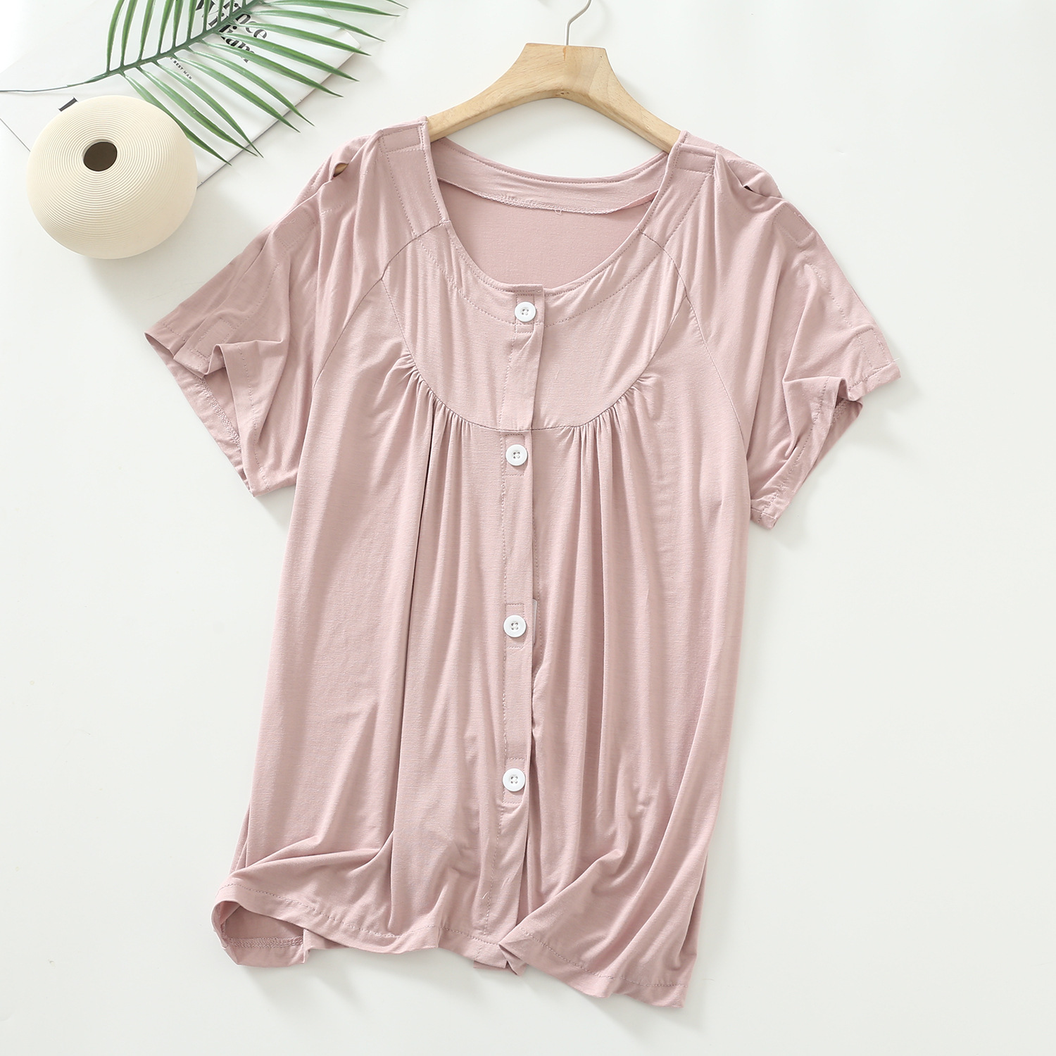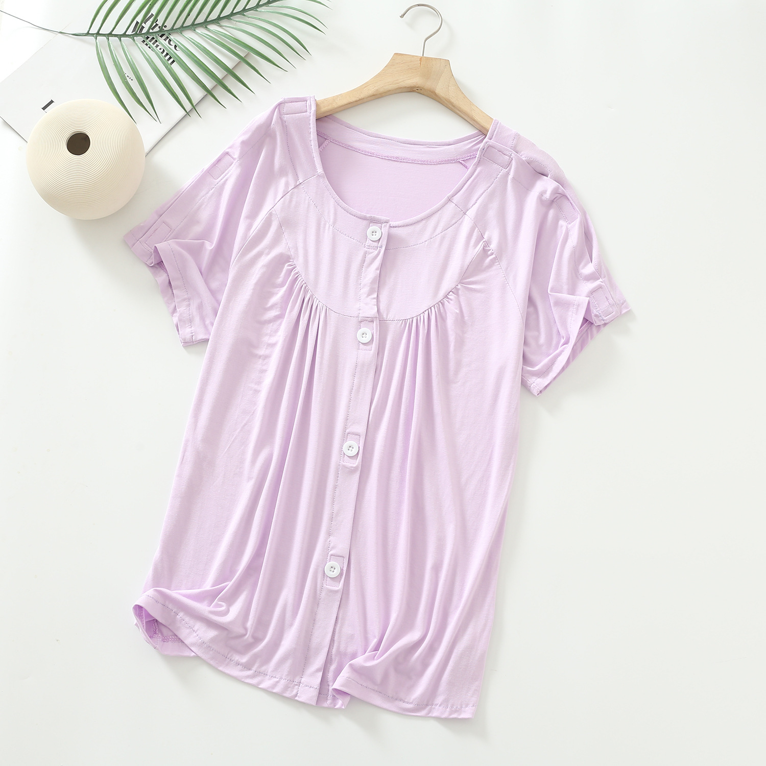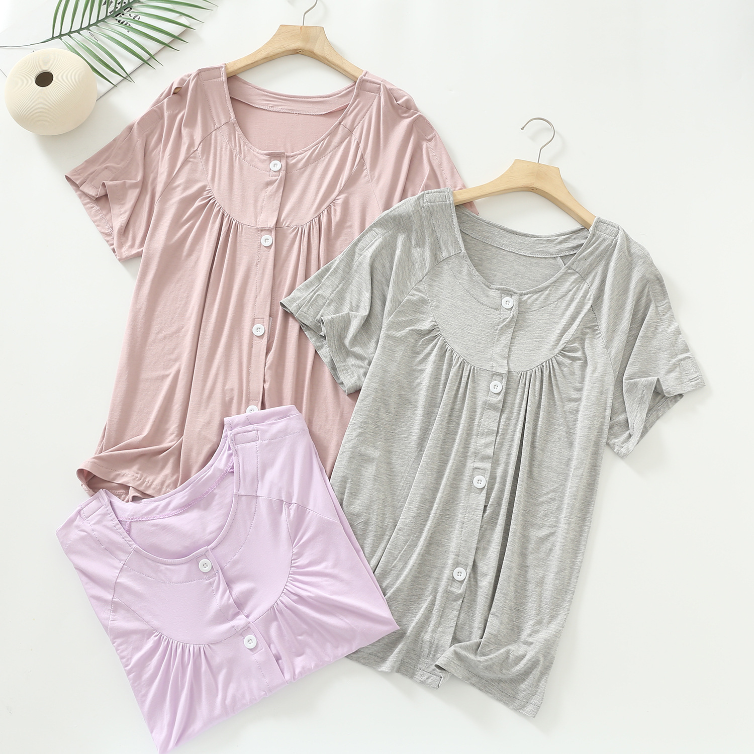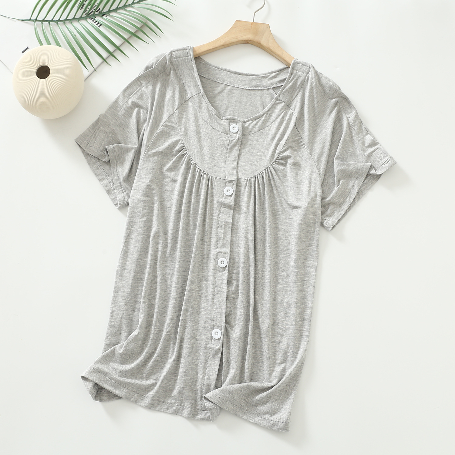 골절 수술 후 입원 한 마비 된 노인 병상 환자를위한 착용하기 쉬운 수유 복 남성과 여성을위한 반팔 여름 의류