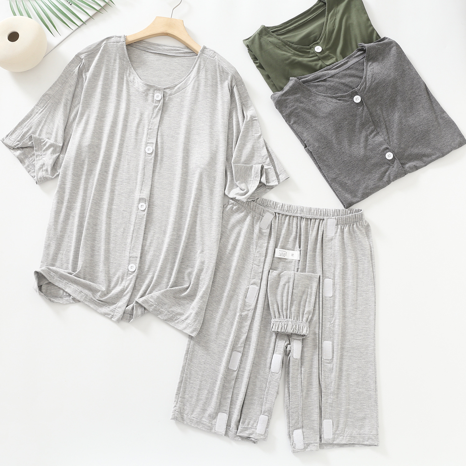골절 수술 후 입원 한 마비 된 노인 병상 환자를위한 착용하기 쉬운 수유 복 남성과 여성을위한 반팔 여름 의류스토어 가기