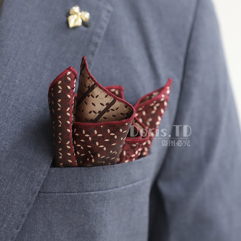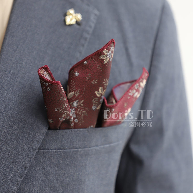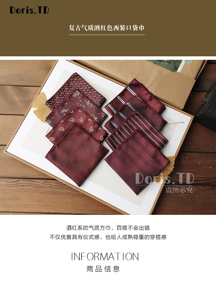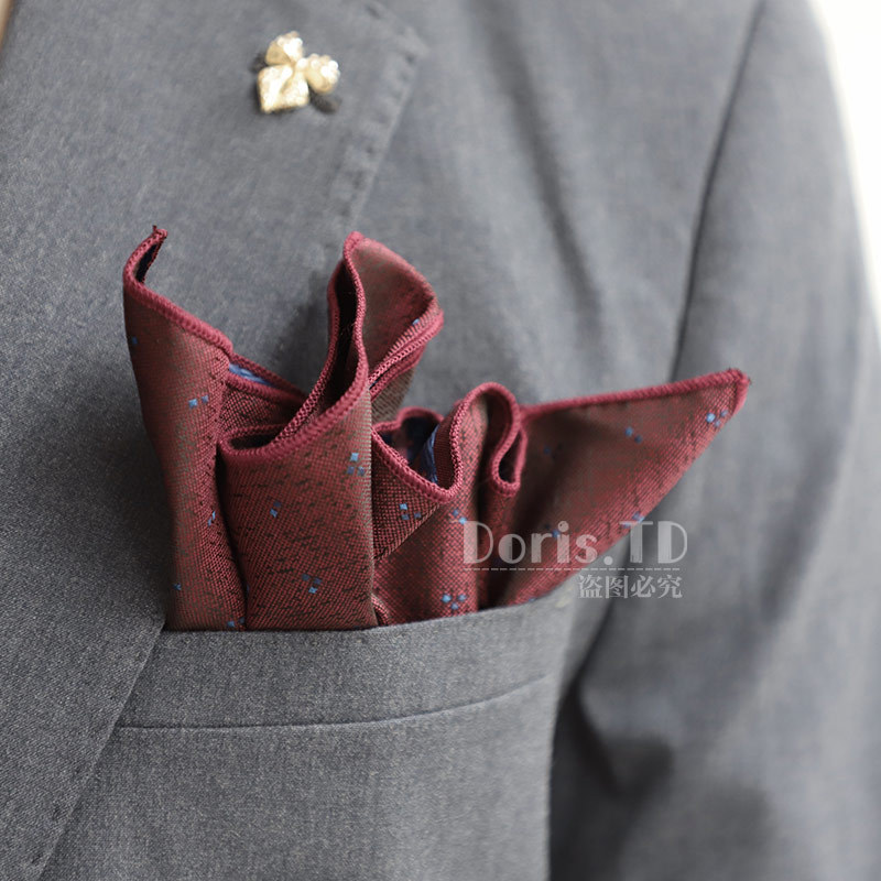 공장 재고 도매 복고풍 기질 버건디 세트 포켓 타월 결혼식 연회 칵테일 파티 남자를위한 작은 광장스토어 가기