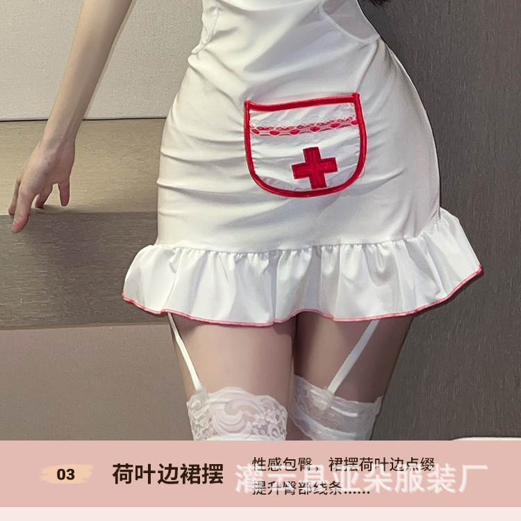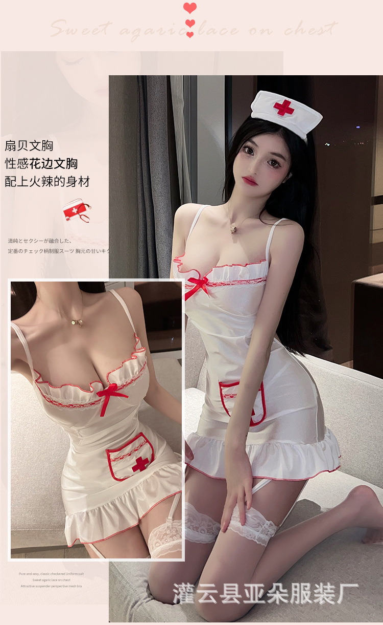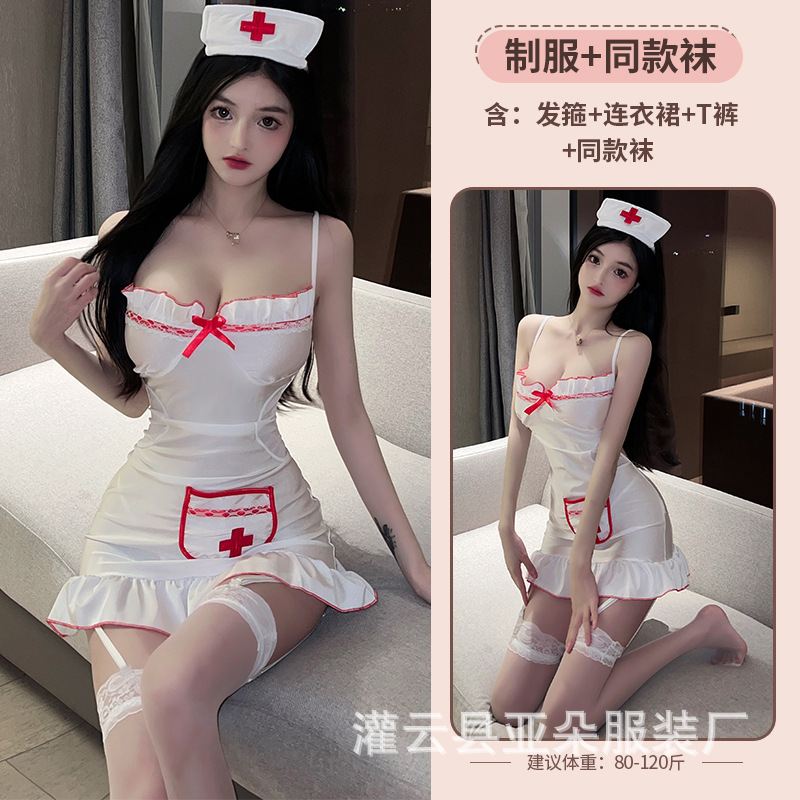 섹시 란제리 섹시 중공 간호사 유니폼 유혹 뜨거운 코스프레 세트 스타킹스토어 가기