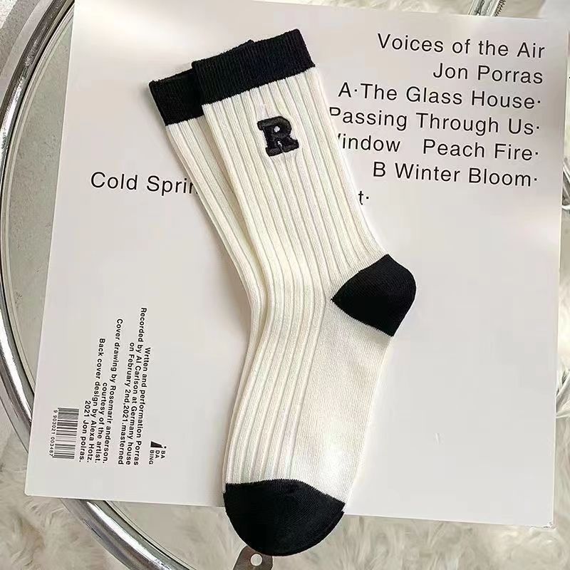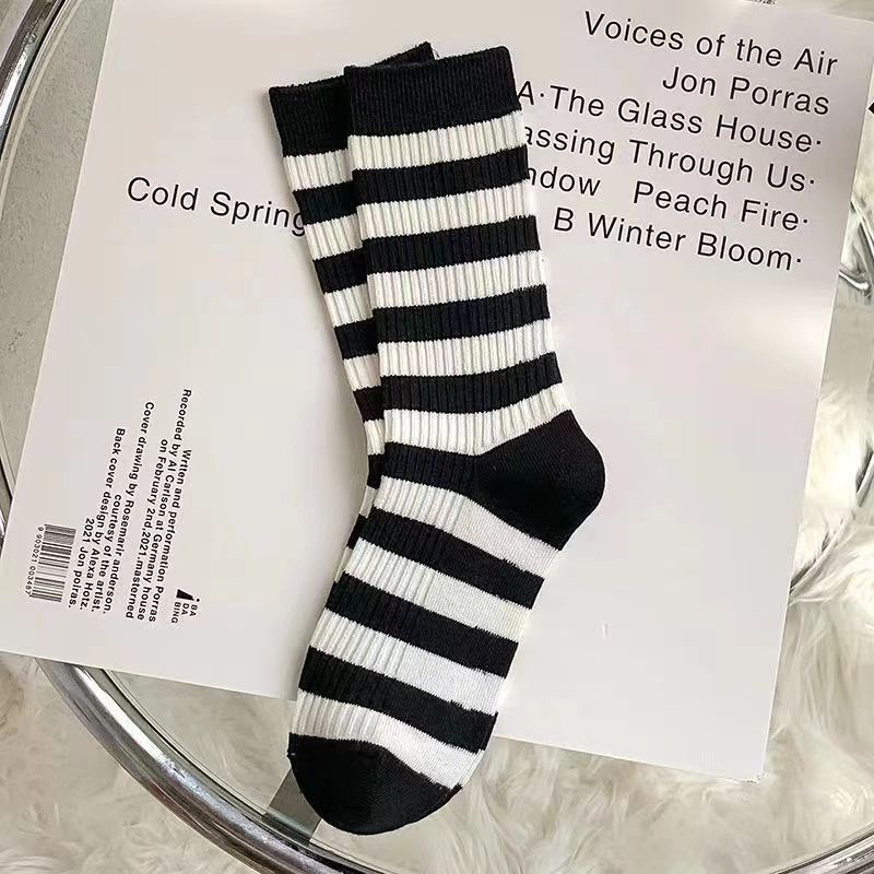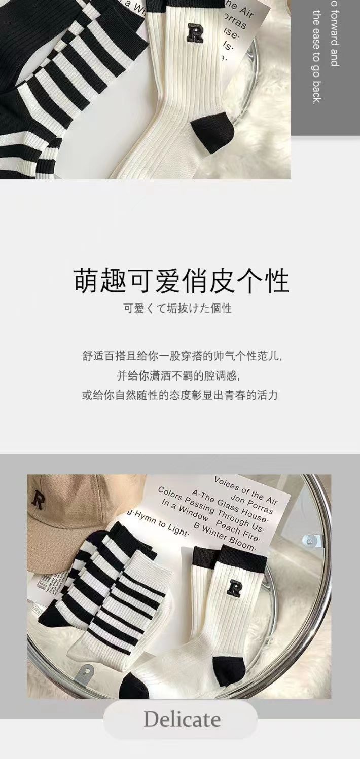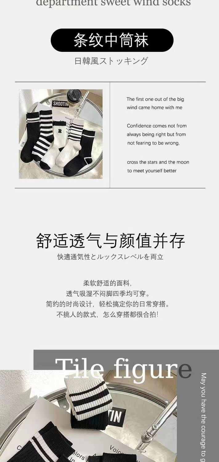 양말 여성 흑백 스트라이프 면 스포츠 편지 양말 트렌디 스트리트 미드 튜브 양말 여성 양말 학생 모든 경기 패션스토어 가기