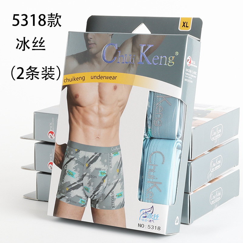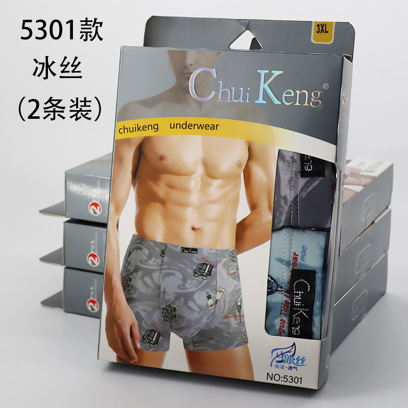 아이스 실크 느낌 남성 속옷 순면 박스 포장 남성 프린트 사각팬티 통기성 중간 허리 사각팬티 통기성 좋고 상쾌함