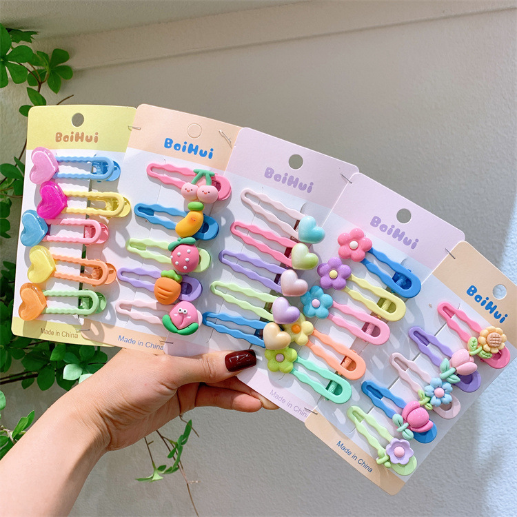 새로운 아이들의 꽃 사랑 과일 머리핀 귀여운 소녀 만화 머리핀 세트 앞머리 깨진 머리 사이드 클립스토어 가기