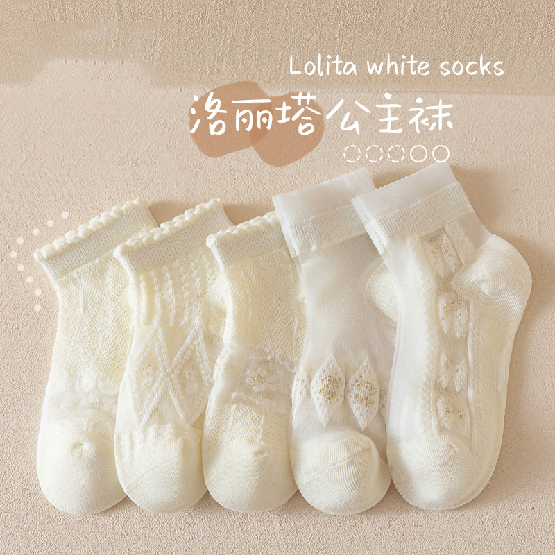 여아 양말 로리타 공주 양말 레이스 양말 어린이 여름 얇은 봄과 가을 여름 양말 흰색 어린이 양말 여름