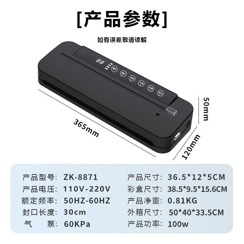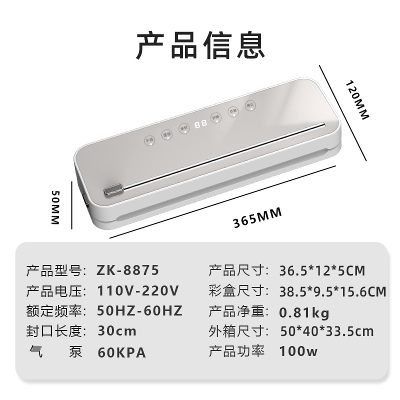 진공 밀봉기 식품 진공 포장기 소형 가정용 자동 밀봉 플라스틱 밀봉기 상업 보존 인공물