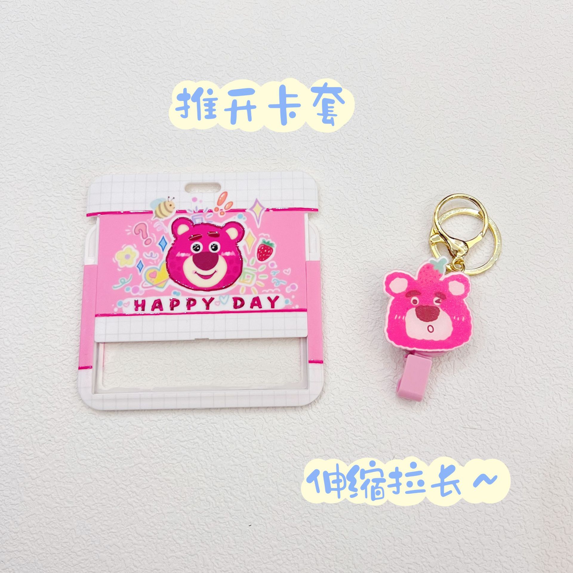 수평 딸기 곰 양짱통 식사 카드 학생 카드 홀더 지하철 작업 허가 키 체인 가방 펜던트 쉬운 풀 버클 교수형스토어 가기