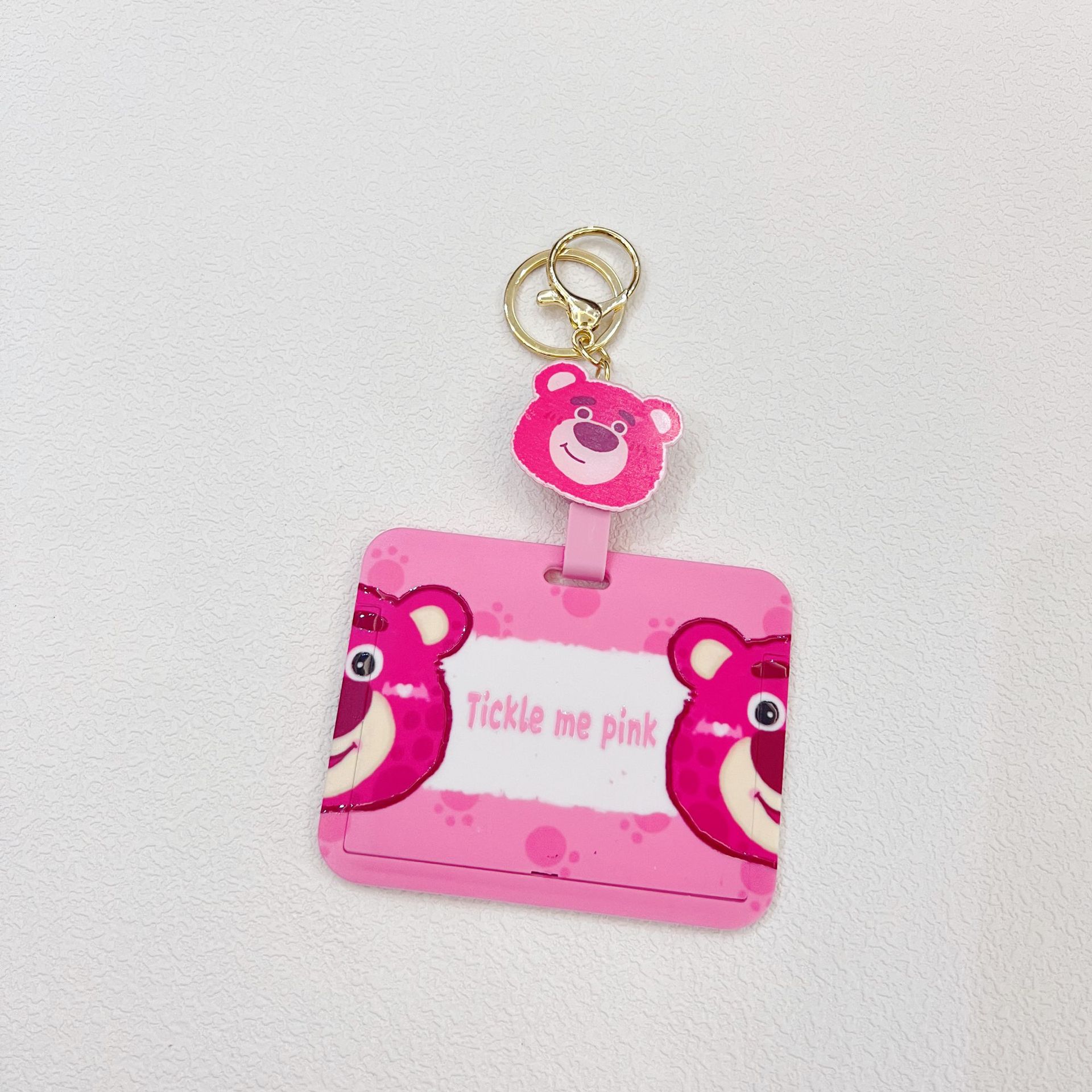수평 딸기 곰 양짱통 식사 카드 학생 카드 홀더 지하철 작업 허가 키 체인 가방 펜던트 쉬운 풀 버클 교수형