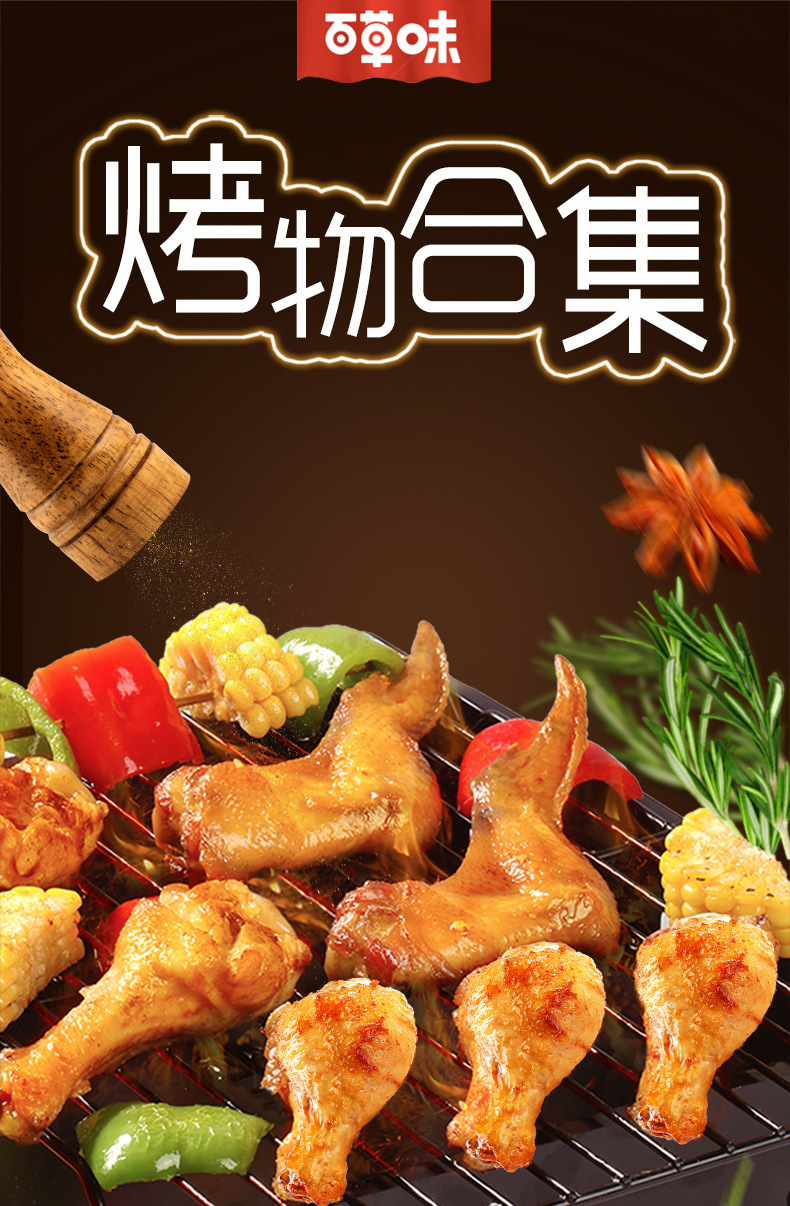 Baicaowei-구이 닭다리 134g 인터넷 연예인 간식 닭날개 뿌리다리 캐주얼 간식스토어 가기