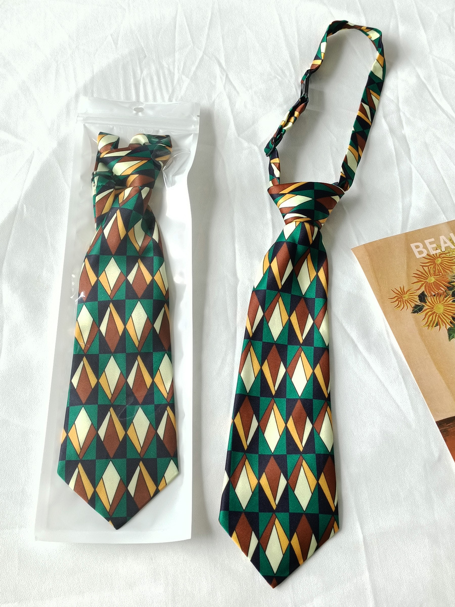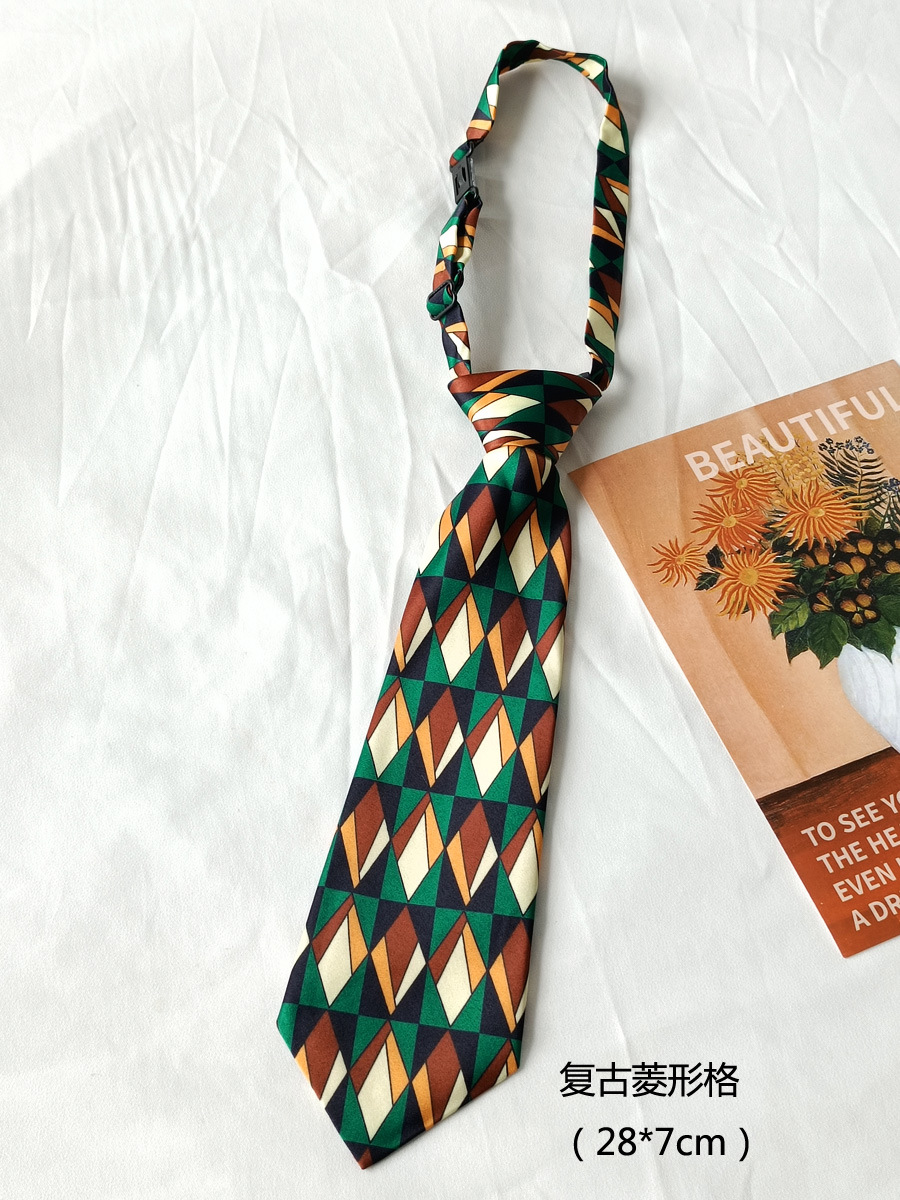 짧은 작은 넥타이 어린이 레트로 다이아몬드 격자 무늬 홍콩 스타일 성격 스티칭 틈새 인쇄 질감 매듭-남성과 여성을위한 무료