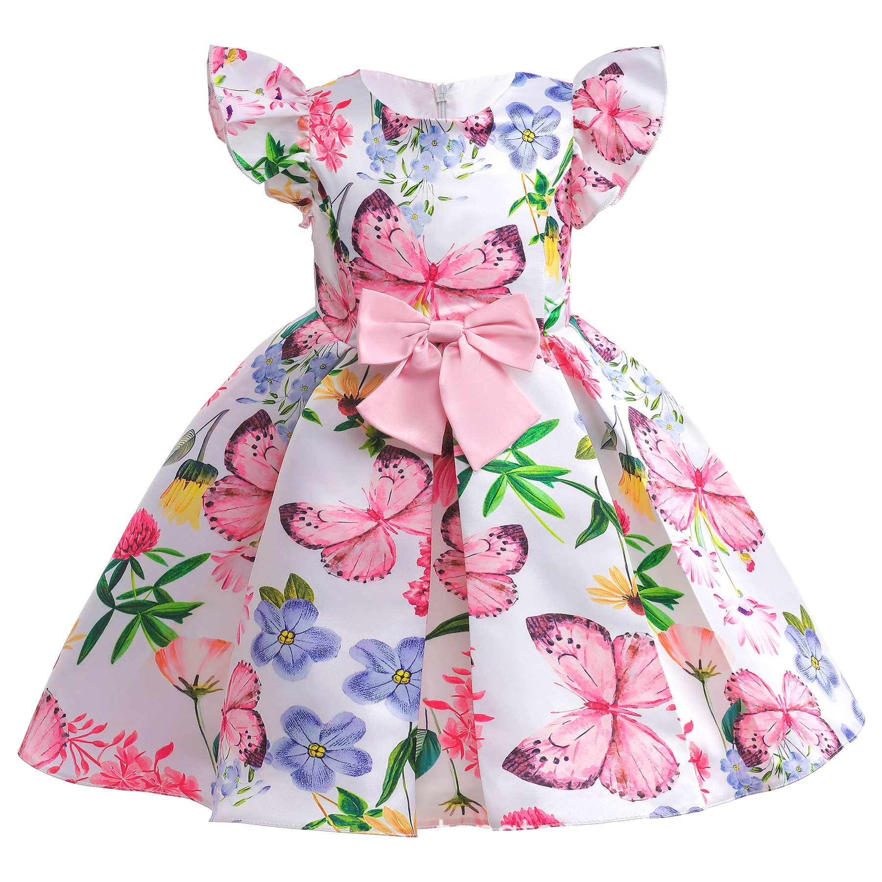 국경 간 소녀 드레스 새로운 유럽과 미국의 나비 인쇄 어린이 드레스 작은 플라잉 슬리브 조끼 드레스 공주 드레스 아동 의류스토어 가기