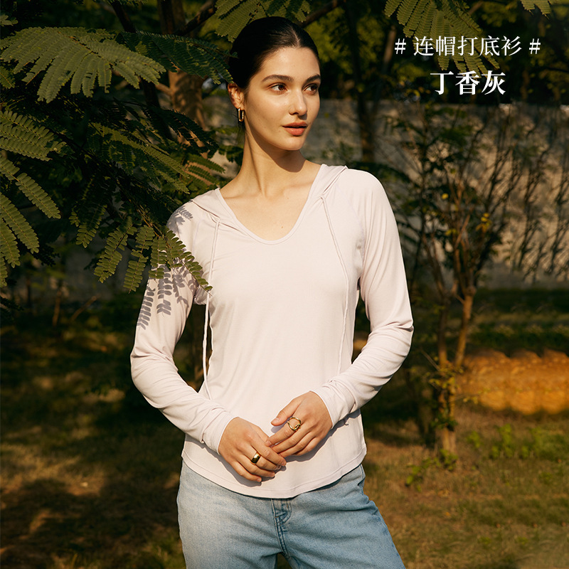 바닥 셔츠 여성 긴팔 얇은 여름 새로운 솔리드 컬러 모달 양면 풀오버 후드 바닥 셔츠 탑스토어 가기