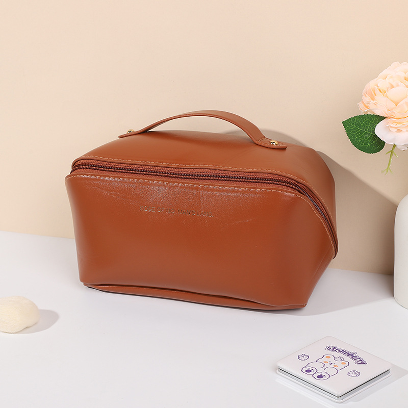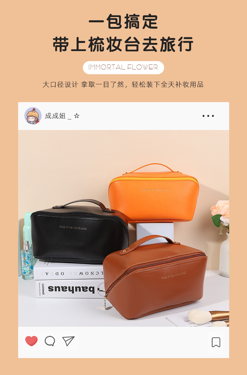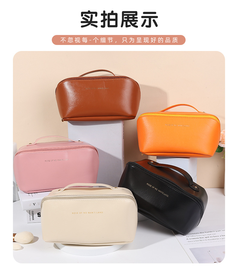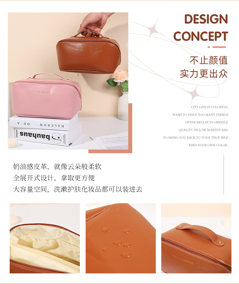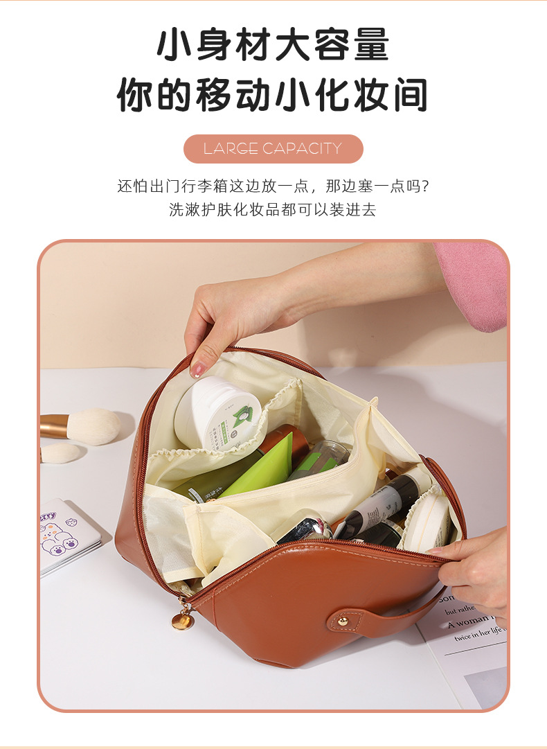 여행용 크로스보더 PU 가죽 대용량 클라우드 화장품 가방, 방수, 고급스러운 휴대용 칸막이 수납 가방스토어 가기