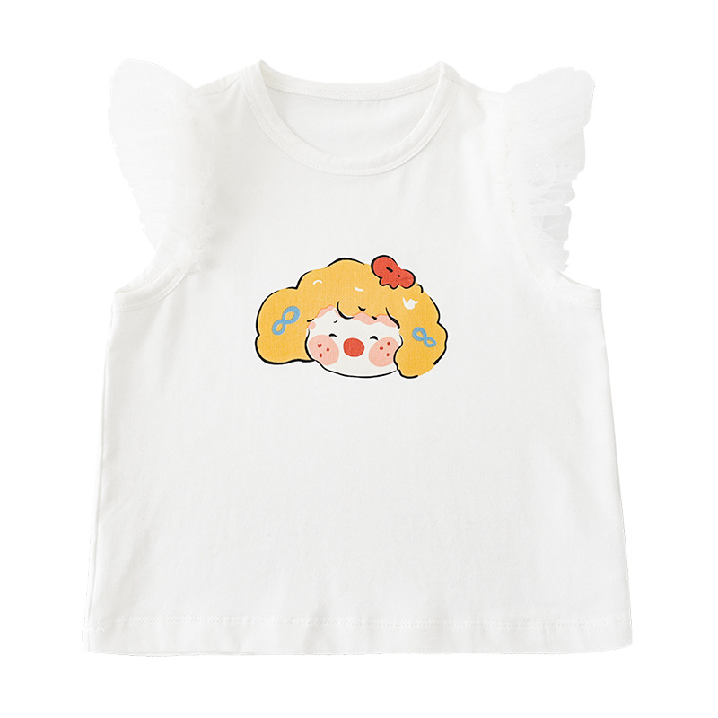 Qiu Duomeng 소녀 빨간 코 작은 소녀 시리즈 세트 어린이 티셔츠 여름 아기 만화 조끼 바지스토어 가기