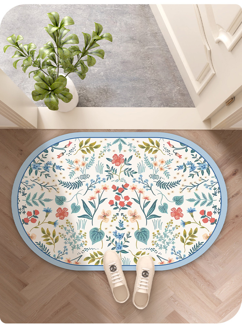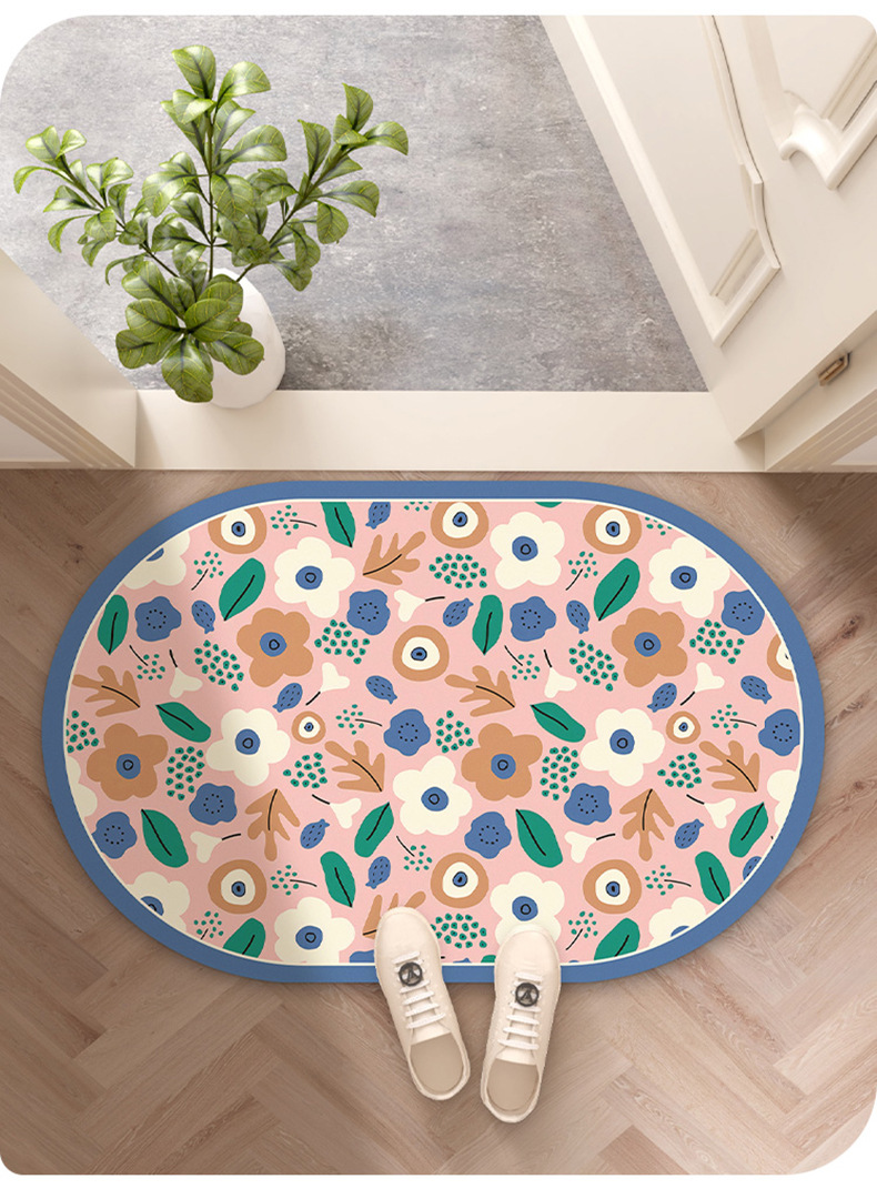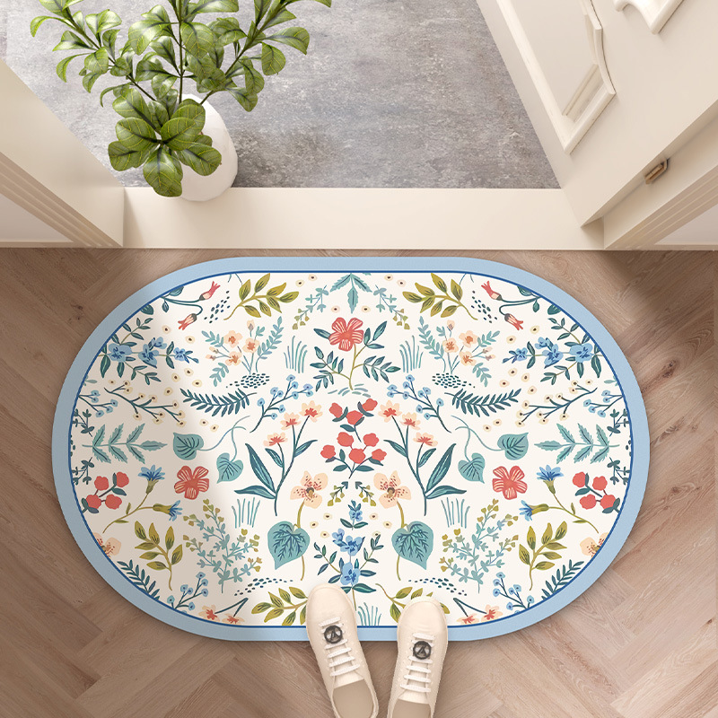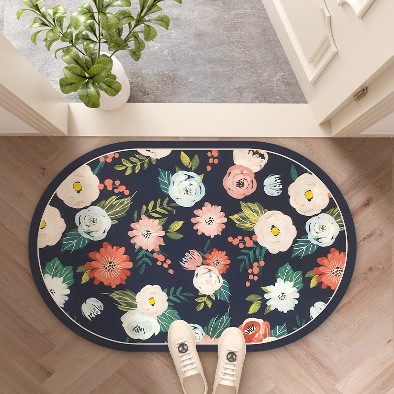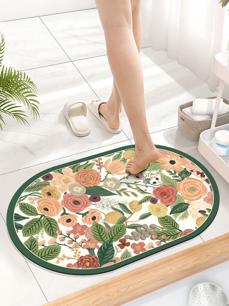 목가적 인 신선한 욕실 흡수성 부드러운 규조 진흙 매트 꽃 화장실 욕실 발 매트 가정용 화장실 미끄럼 방지 매트