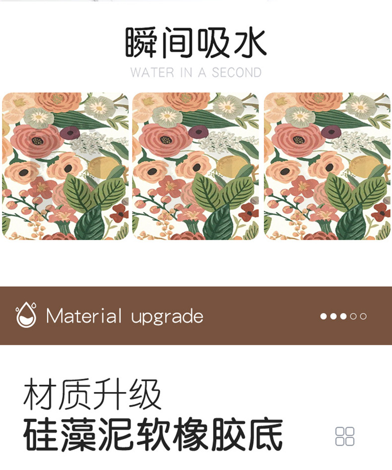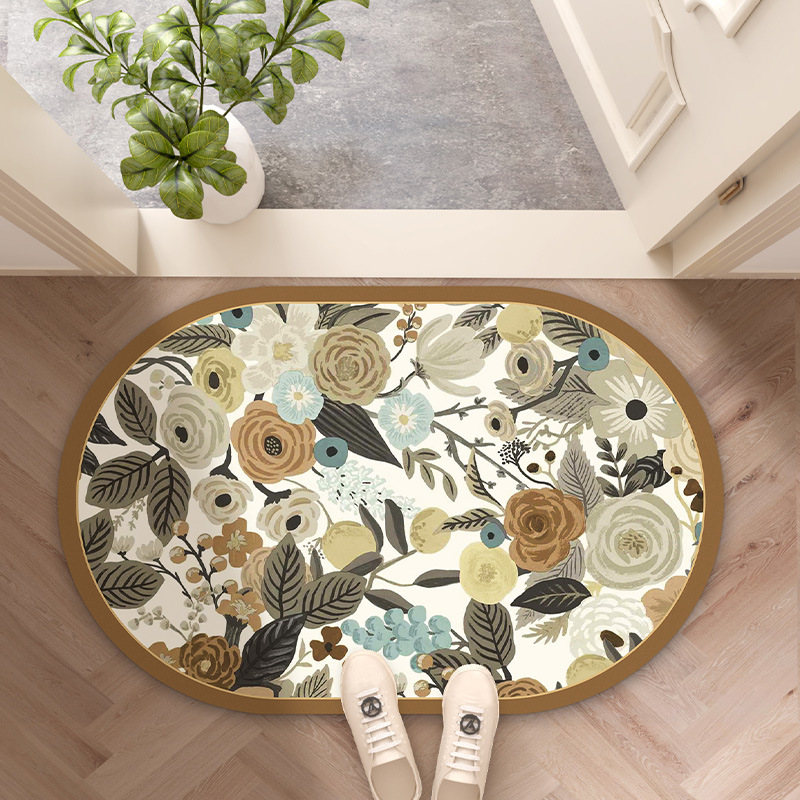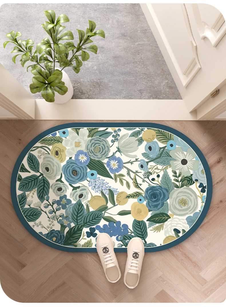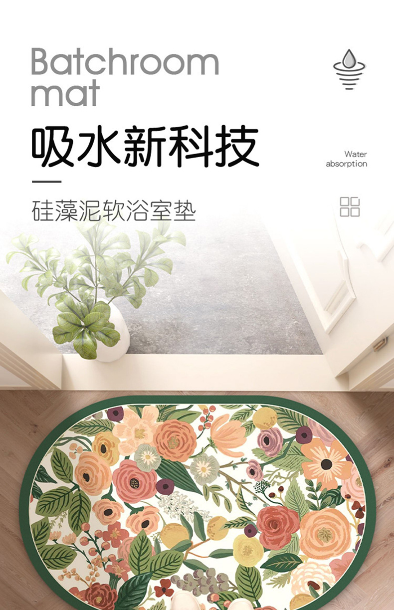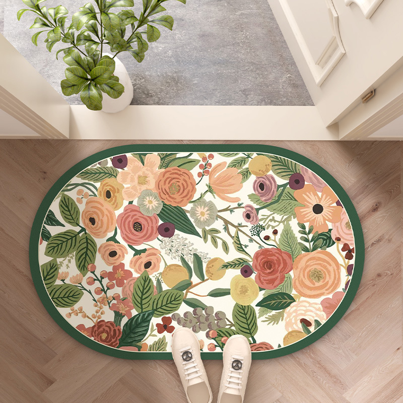 목가적 인 신선한 욕실 흡수성 부드러운 규조 진흙 매트 꽃 화장실 욕실 발 매트 가정용 화장실 미끄럼 방지 매트