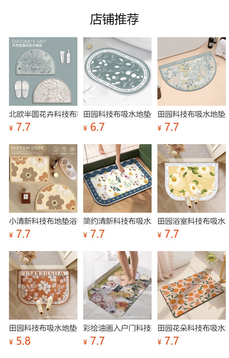 목가적 인 신선한 욕실 흡수성 부드러운 규조 진흙 매트 꽃 화장실 욕실 발 매트 가정용 화장실 미끄럼 방지 매트스토어 가기