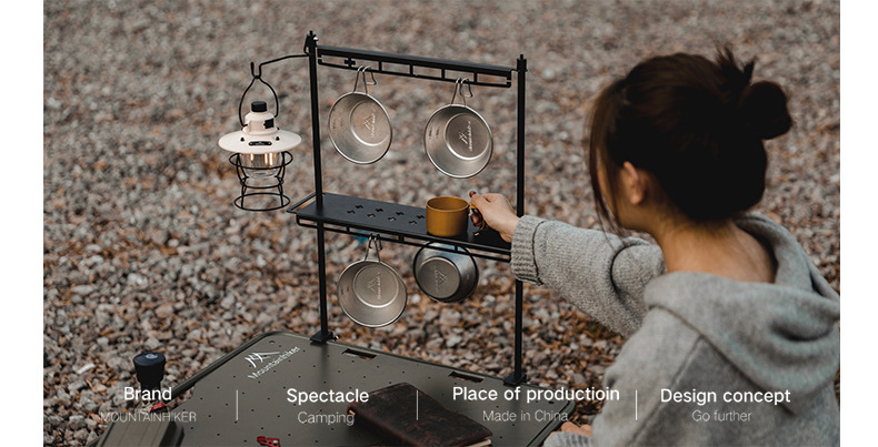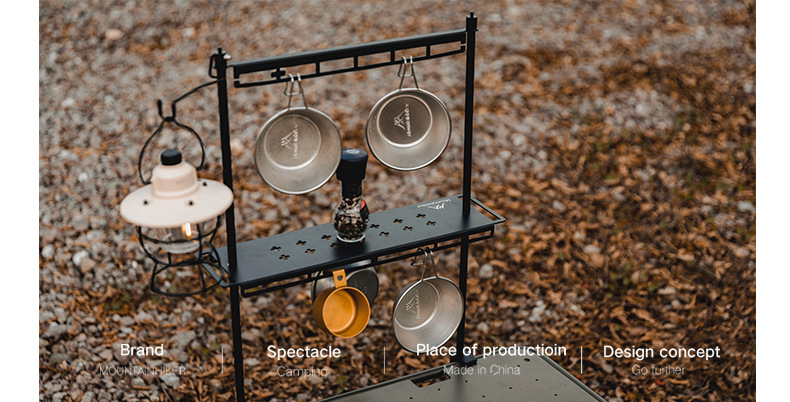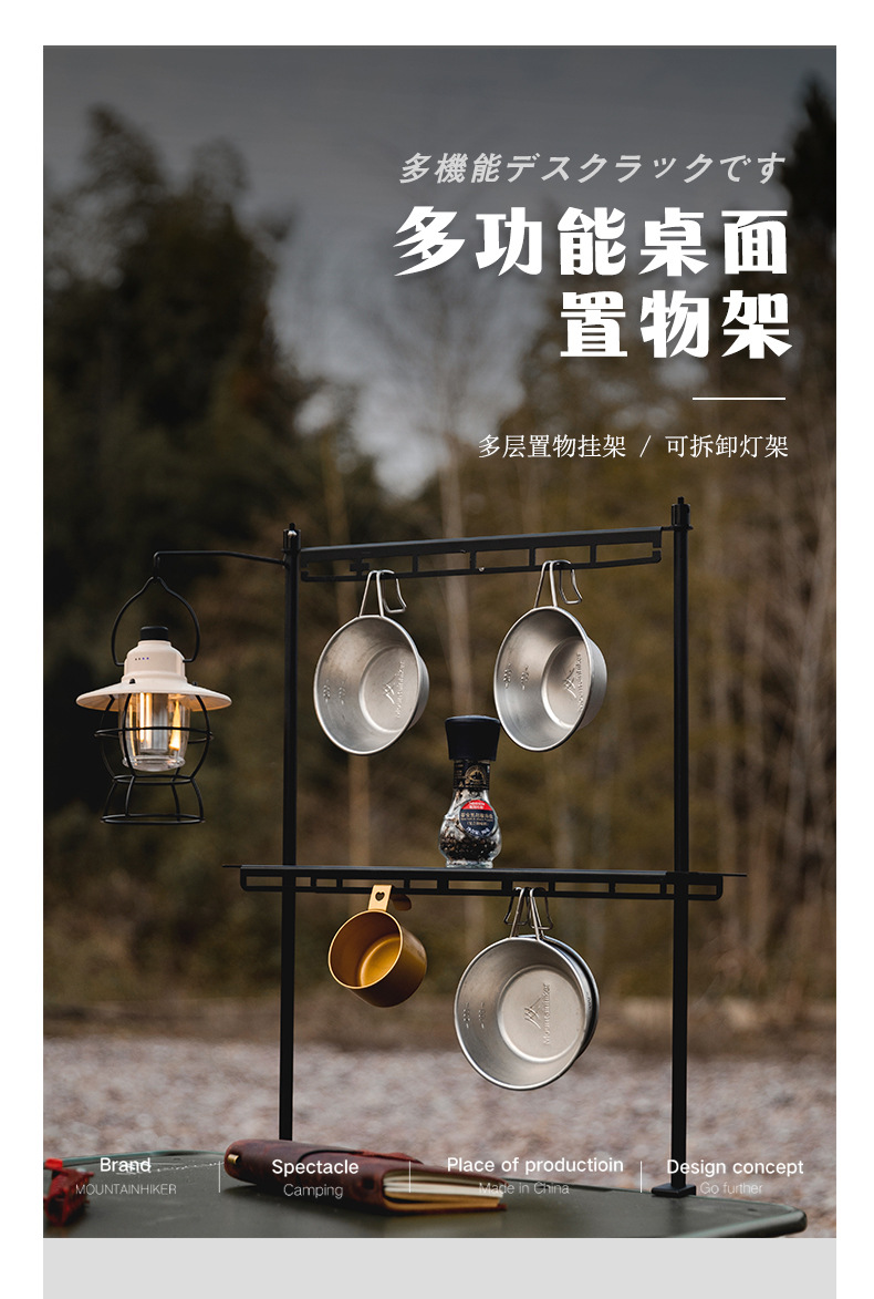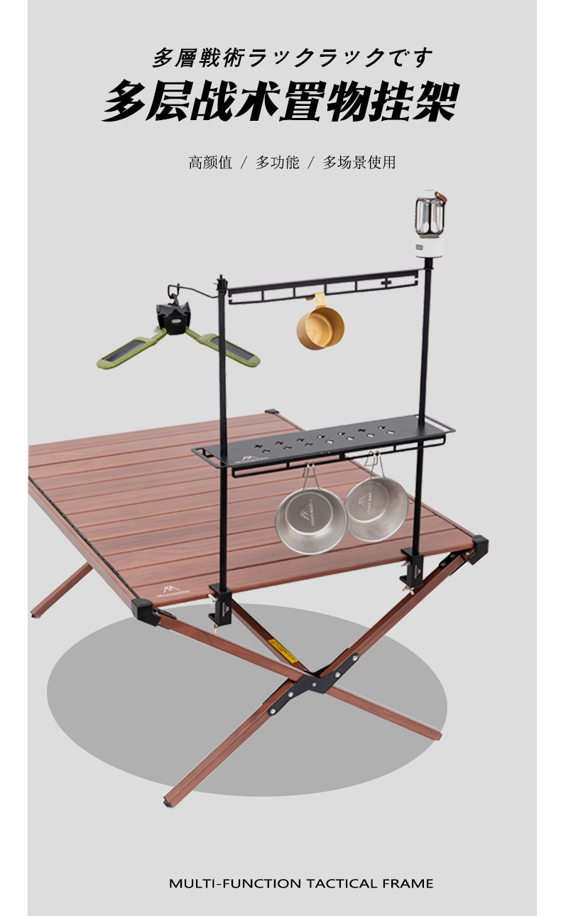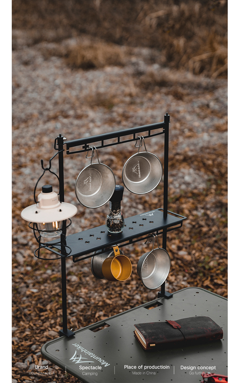 캠핑장 외부 등산 고객 라이트 랙 후크가있는 다기능 테이블 이동식 스토리지 랙