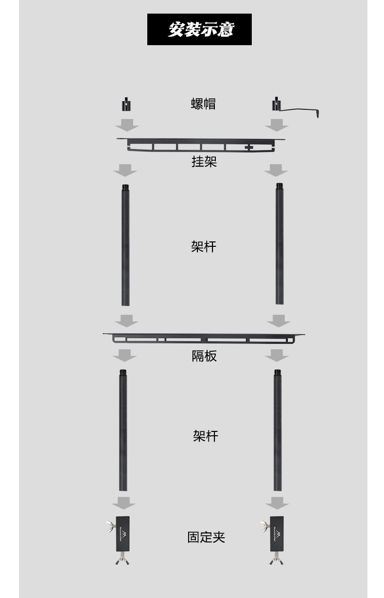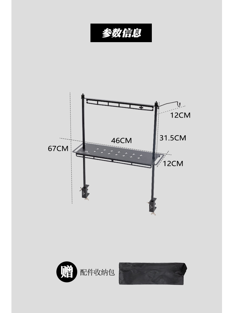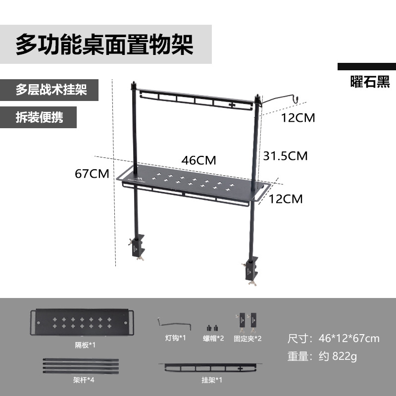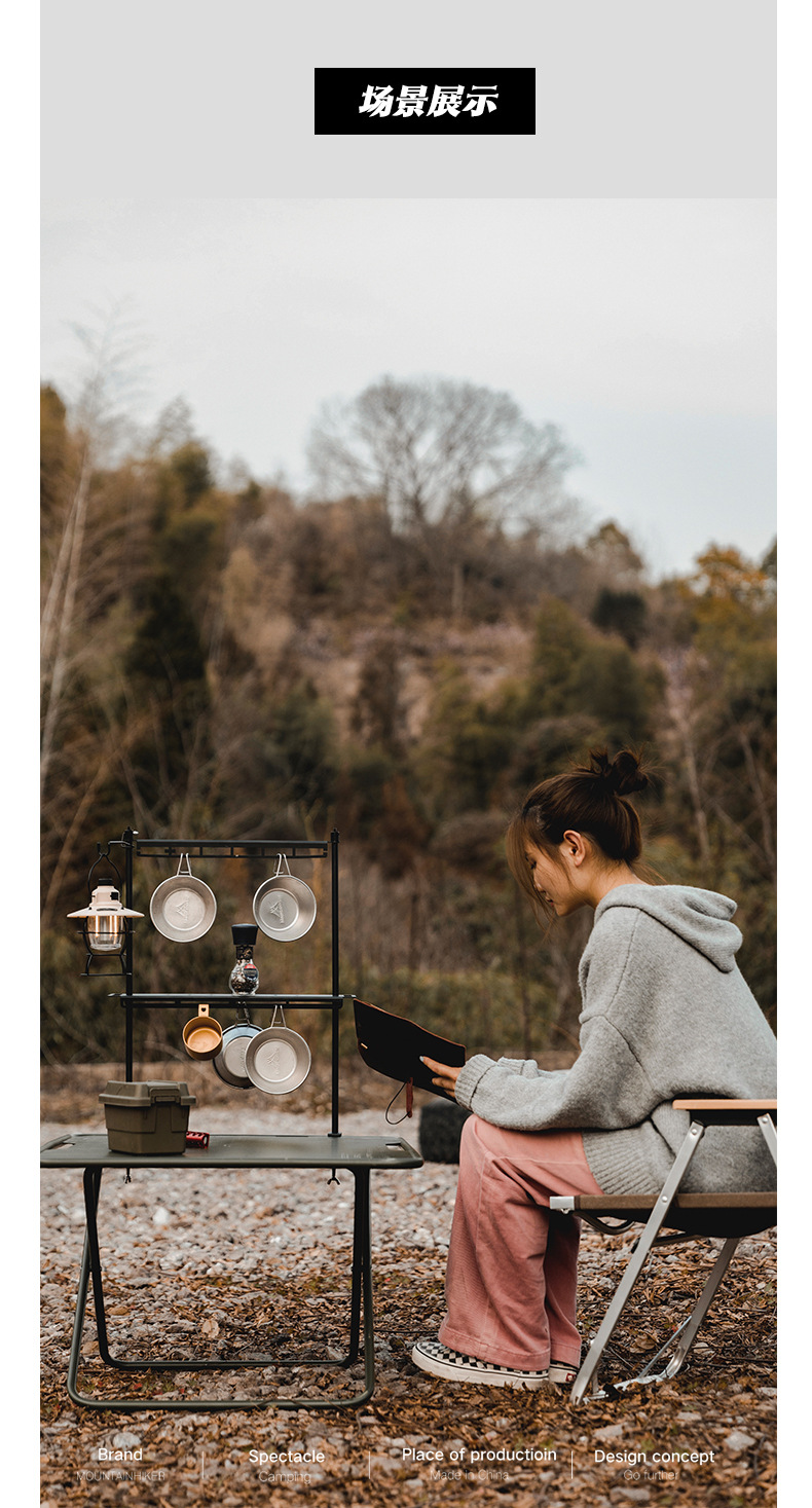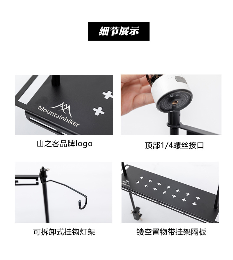 캠핑장 외부 등산 고객 라이트 랙 후크가있는 다기능 테이블 이동식 스토리지 랙