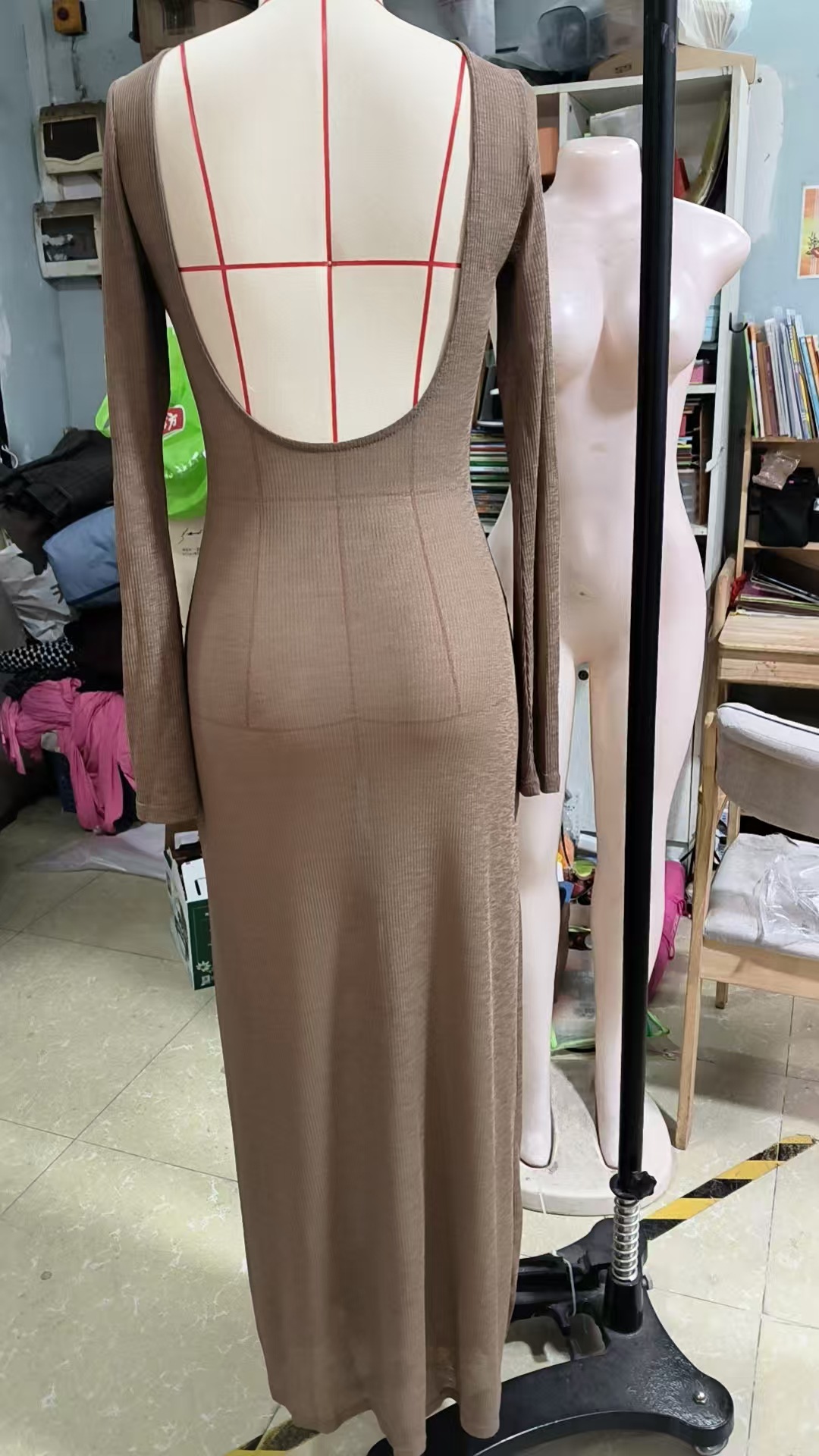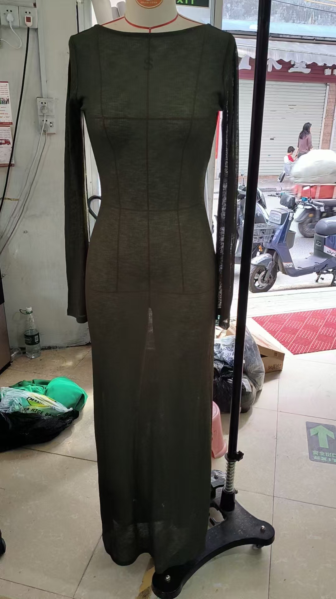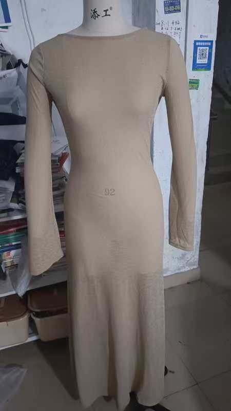 2023 둥근 목 해변 선 스크린 긴 소매 등받이 원피스스토어 가기