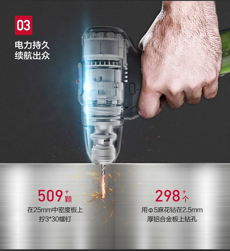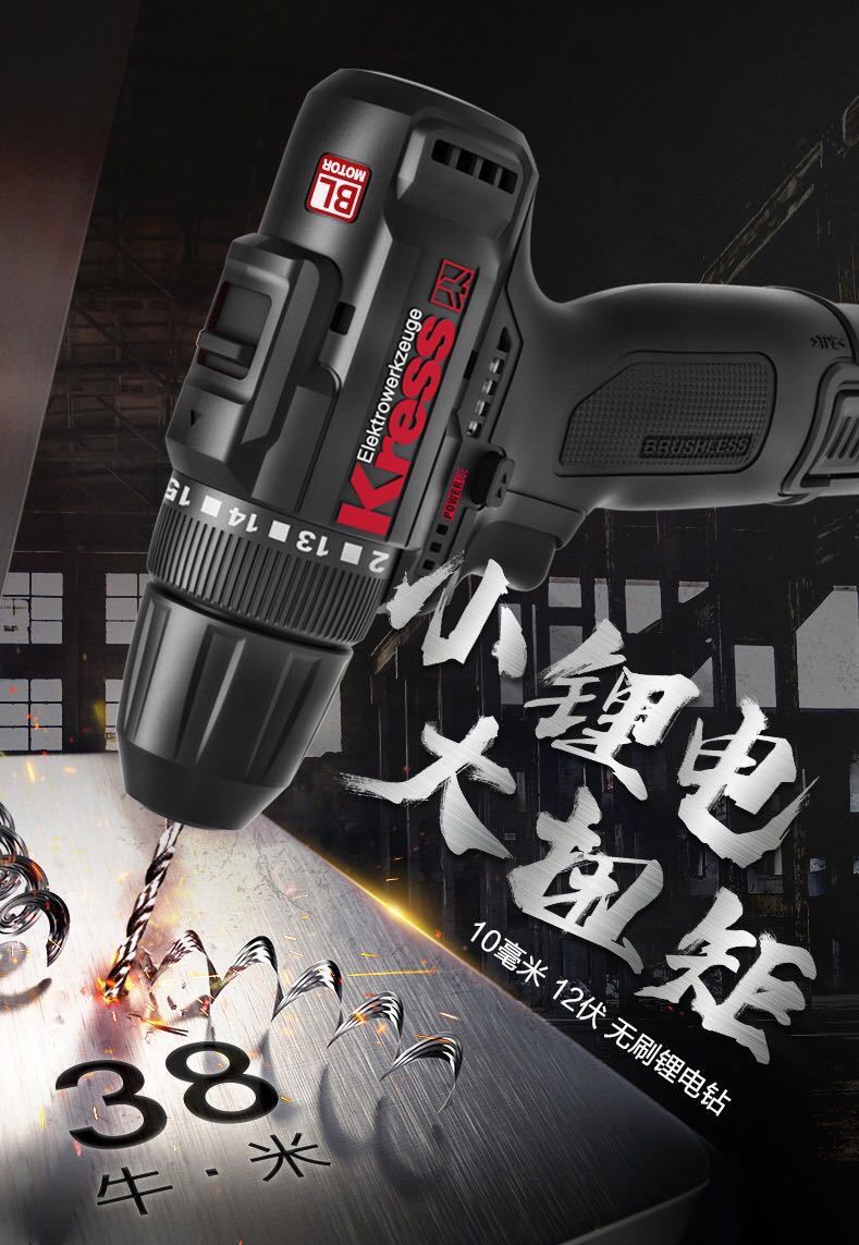 • KU202 브러시리스 전기 드릴, 배터리 1개 및 충전 1개 12V